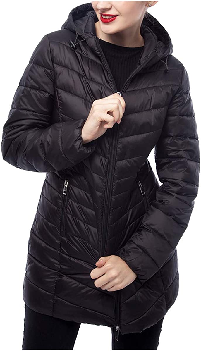 Rokka&Rolla Women's Lightweight Packable Puffer Jacket Water-Resistant Hooded Winter Long Coat