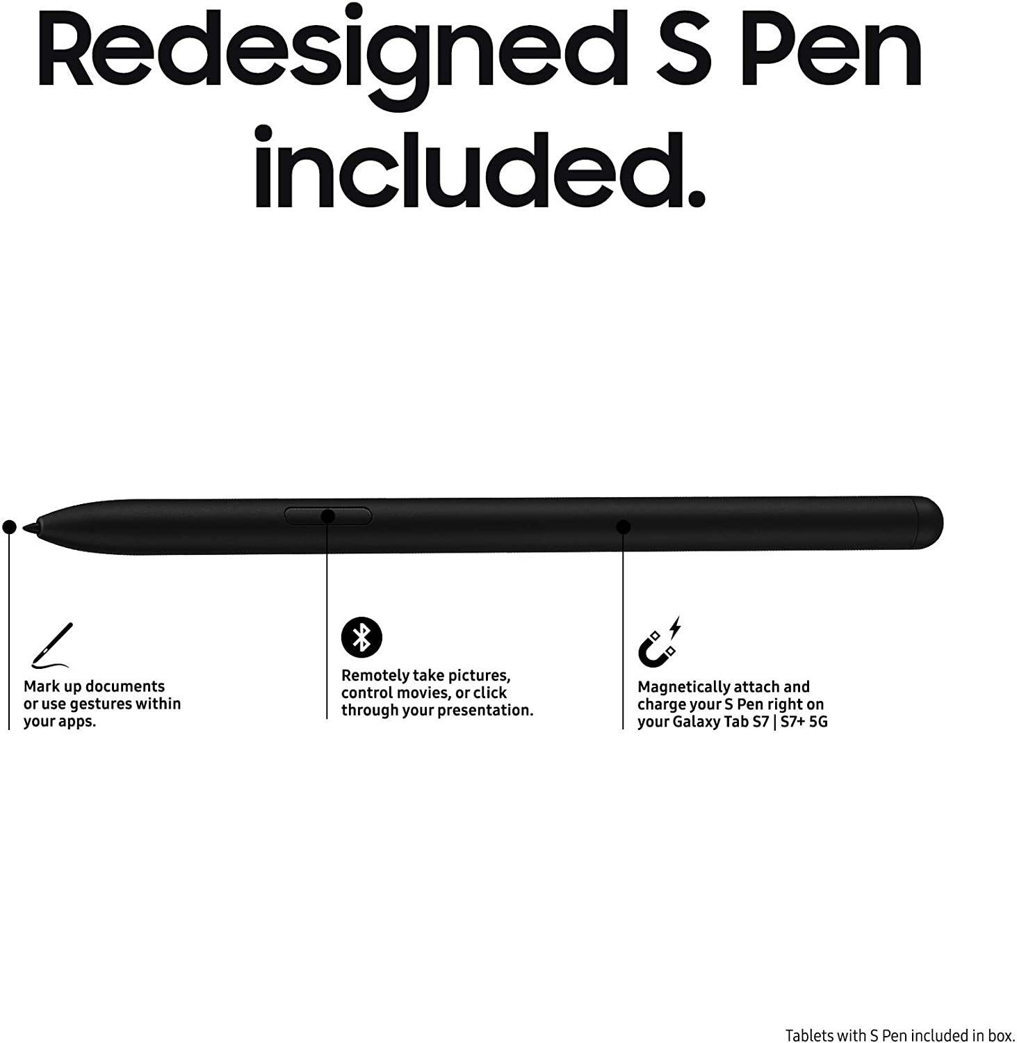 With the power of a PC and the mobility of a tablet, the Samsung Galaxy Tab S7+ Plus Wi-Fi is your secret weapon for getting more done, wherever you are. Enjoy the advantages of a truly two-in-one device, where an expanded keyboard and built-in memory of 128GB are backed by a battery that lasts the entire work day for ultimate portability. With a redesigned, minimal-lag S Pen that lets you control a presentation with the tap of a finger and an expanded edge-to-edge screen for better streaming, gaming, and video chatting, the Galaxy Tab S7+ Plus Wi-Fi simplifies life, work, and play. Meet the Galaxy Tab S7+ Plus series, the most advanced tablet to provide a PC-like performance that you can enjoy anywhere. Ready to power your ideas whenever creativity strikes, stream, surf, create on an immersive Samsung tablet experience. Sold separately. Battery life may vary depending on network environment, usage patterns and other factors.