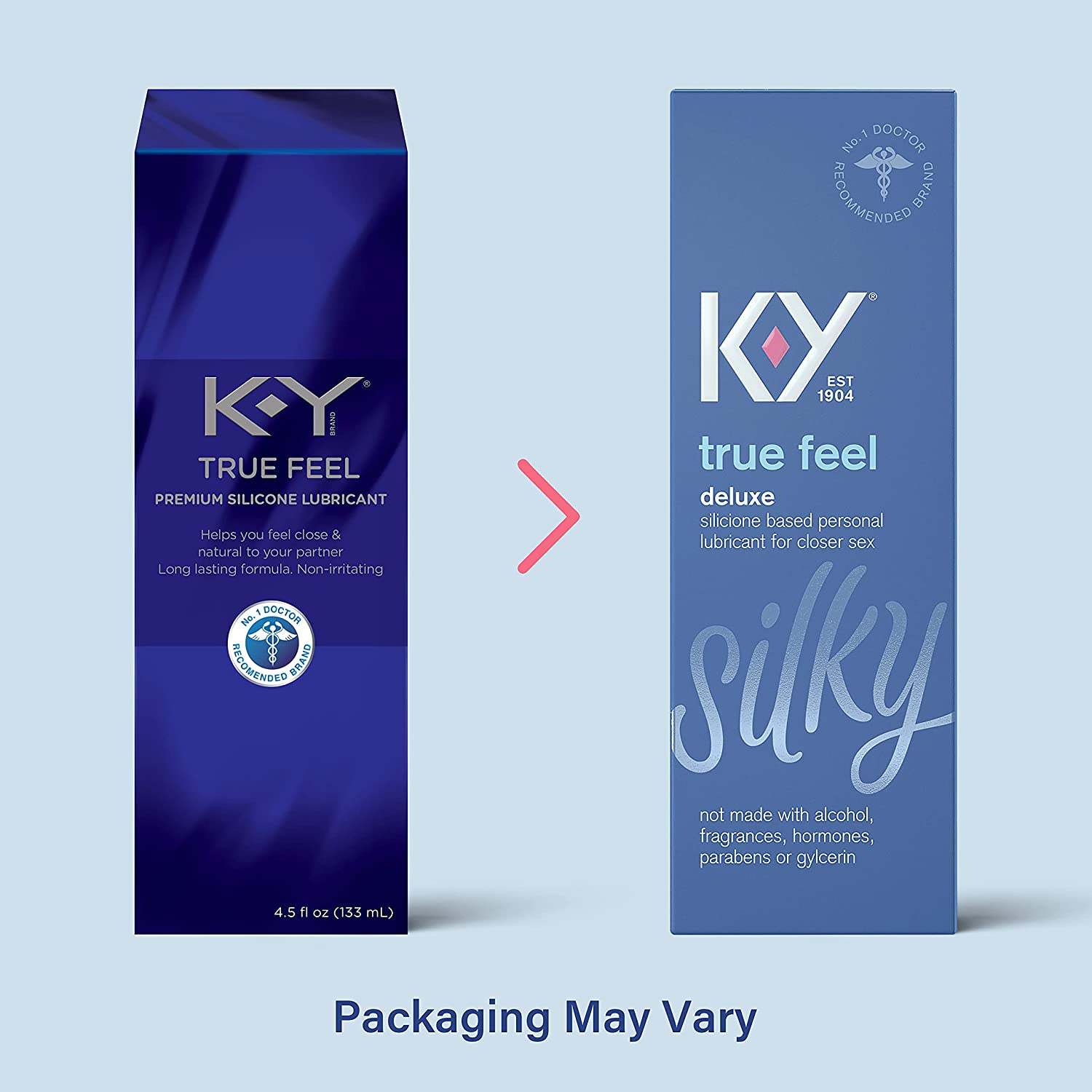 Sex Lube for Women, K-Y True Feel Premium Silicone Personal Lubricant for Sex, Safe to Use with Natural Rubber Latex Condoms, 4.5 oz (Packaging May Vary)