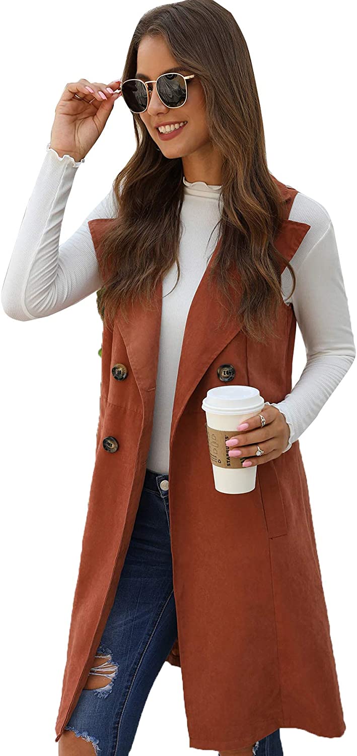 SheIn Women's Double Breasted Long Vest Jacket Casual Sleeveless Pocket Outerwear Longline