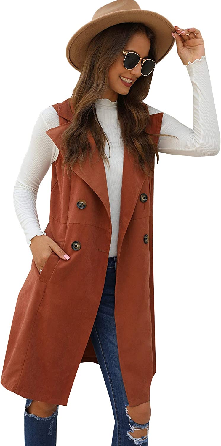 SheIn Women's Double Breasted Long Vest Jacket Casual Sleeveless Pocket Outerwear Longline