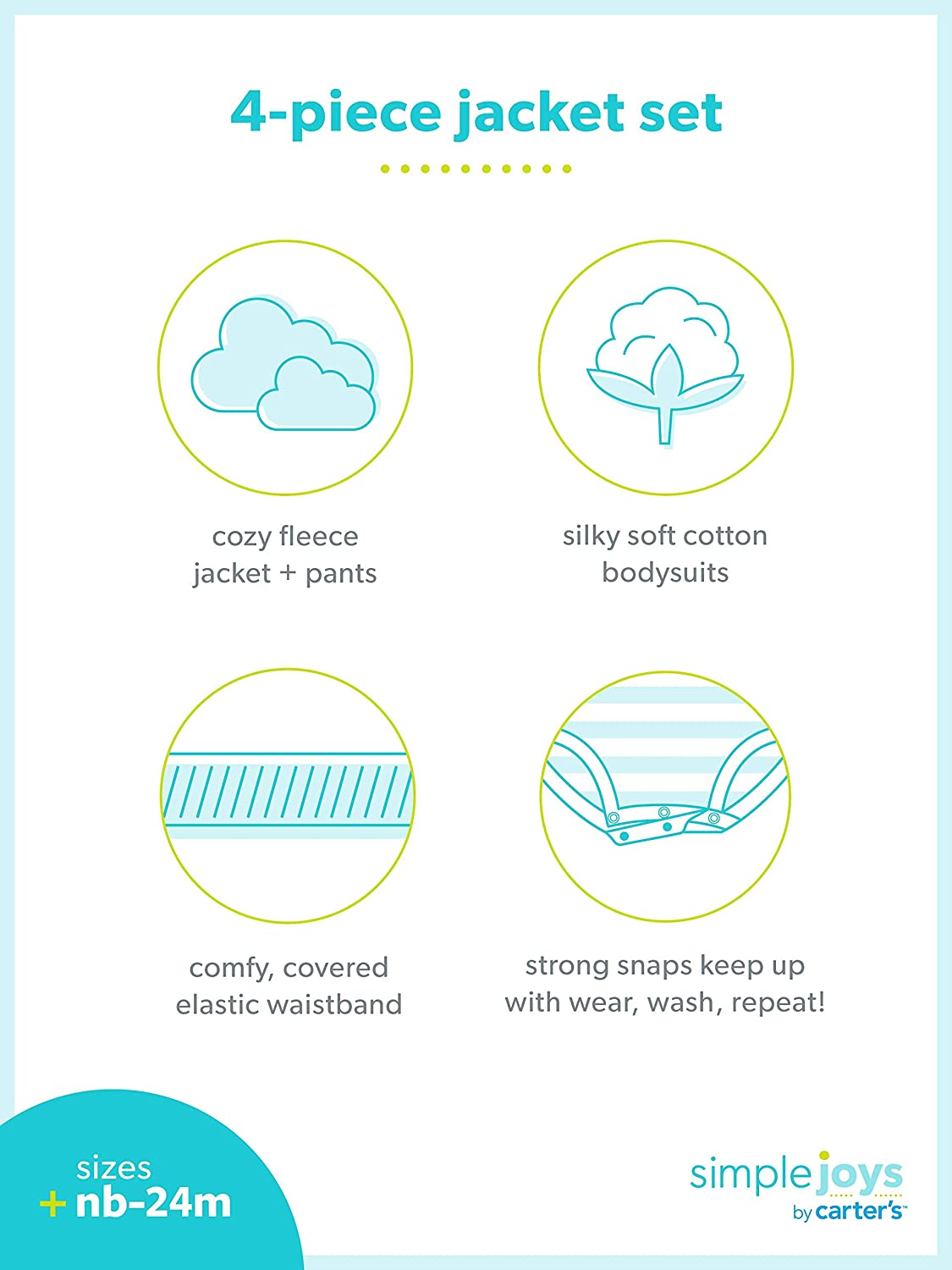 Simple Joys by Carter's Baby Boys' 4-Piece Fleece Jacket, Pant, and Bodysuit Set