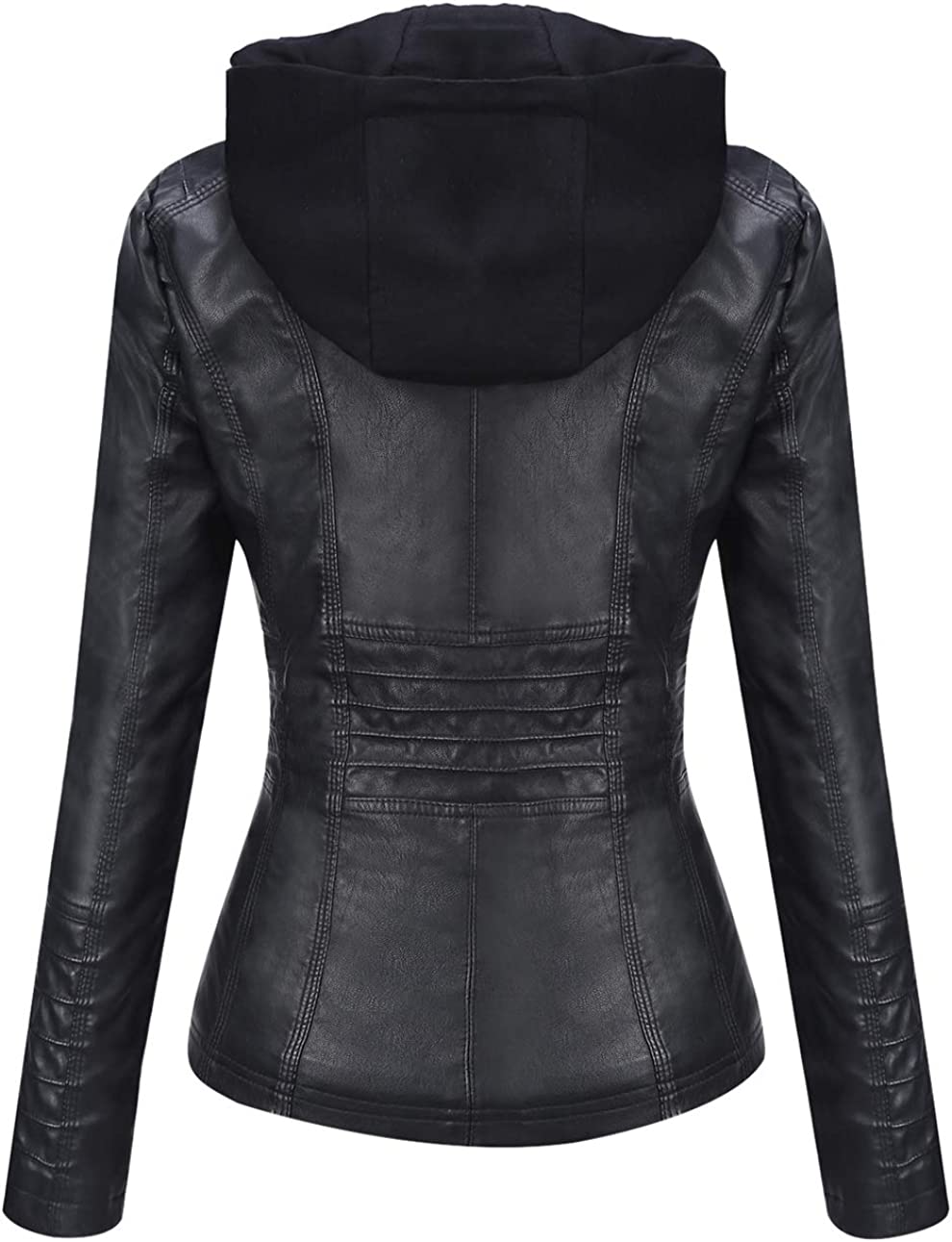 Springrain Women's Casual Stand Collar Detachable Hood PU Leather Jacket