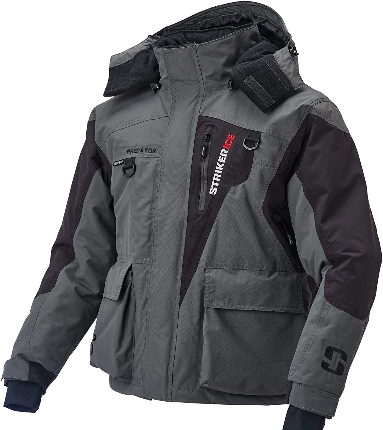 Be prepared for any weather. Our StrikerICE Predator Jacket offers extreme warmth while still being flexible for walking and fishing. Our Hydrapore membrane provides an extra layer of insurance against the nasty elements with a 5,000 mm and 5,000 g rating for a seriously waterproof yet breathable lightweight waterproof jacket for men or women. The cross-flow ventilation system will keep you sweat-free, keeping you warmer in the long run. Designed with plenty of easy-to-reach waterproof pockets for your fishing gear and tools, it also features a Line Cutterz zipper pull for easy fishing-line trimming at a moment’s notice. This safety-conscious jacket option can be used as a flotation assistance device, providing you with peace of mind as well as warmth. The fast-drain hem and sleeve cuffs will allow for water to escape so you can dry off as quickly as possible. The removable hood comes with a memory wire visor. Inner Lycra cuffs lock out the elements and keep moisture from working its way inside. Stay warm and stay dry. The StrikerICE Predator Jacket is the ultimate warm and lightweight fishing jacket for men and women.