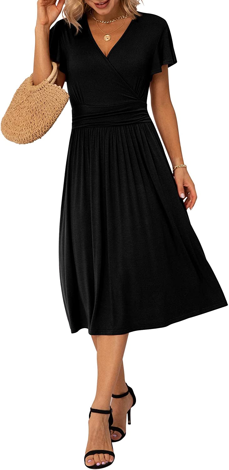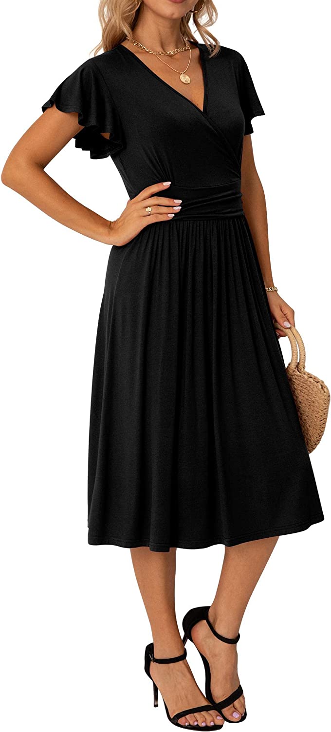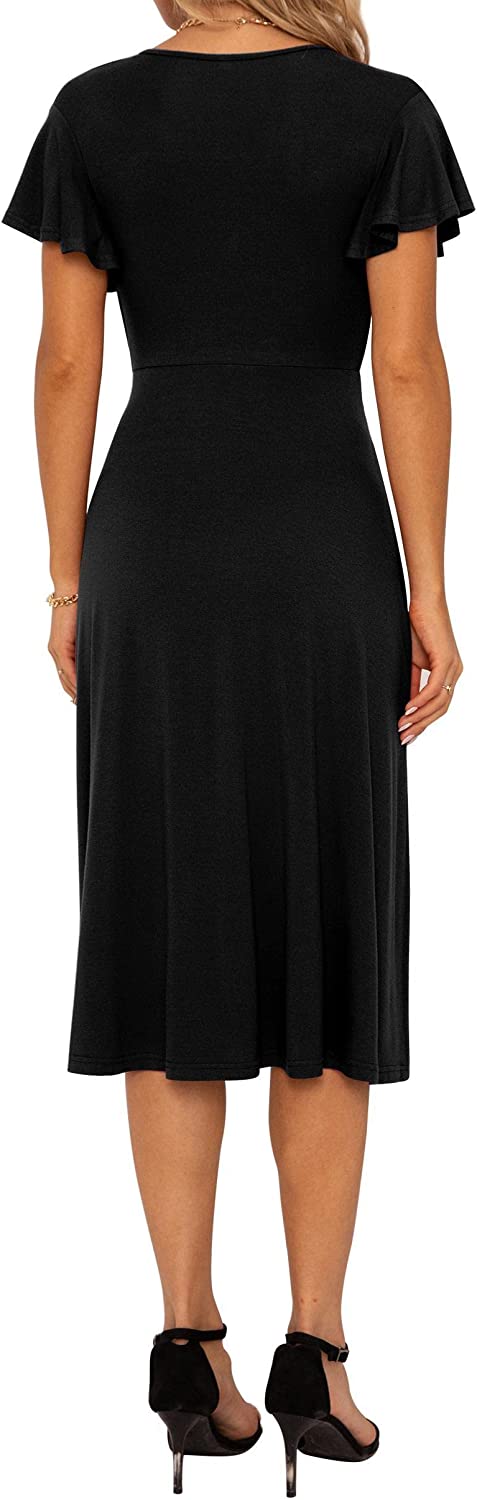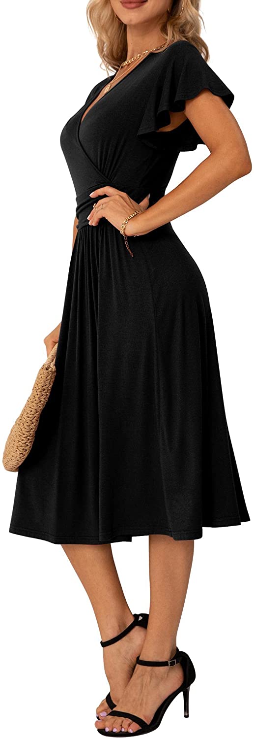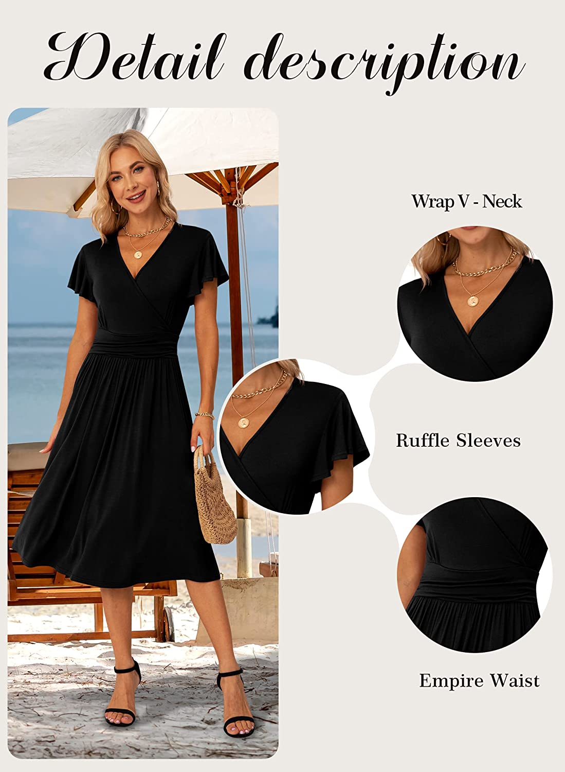 Summer Dress for Women, Casual Ruffle Short Sleeve Dresses, Wrap V-Neck Dress