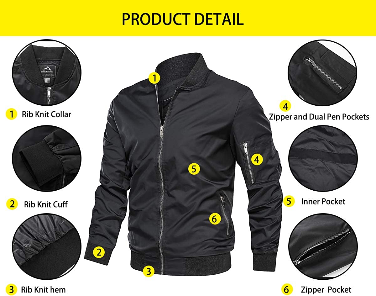 TACVASEN Men's Jacket-Lightweight Casual Spring Fall Thin Bomber Zip Pockets Coat Outwear