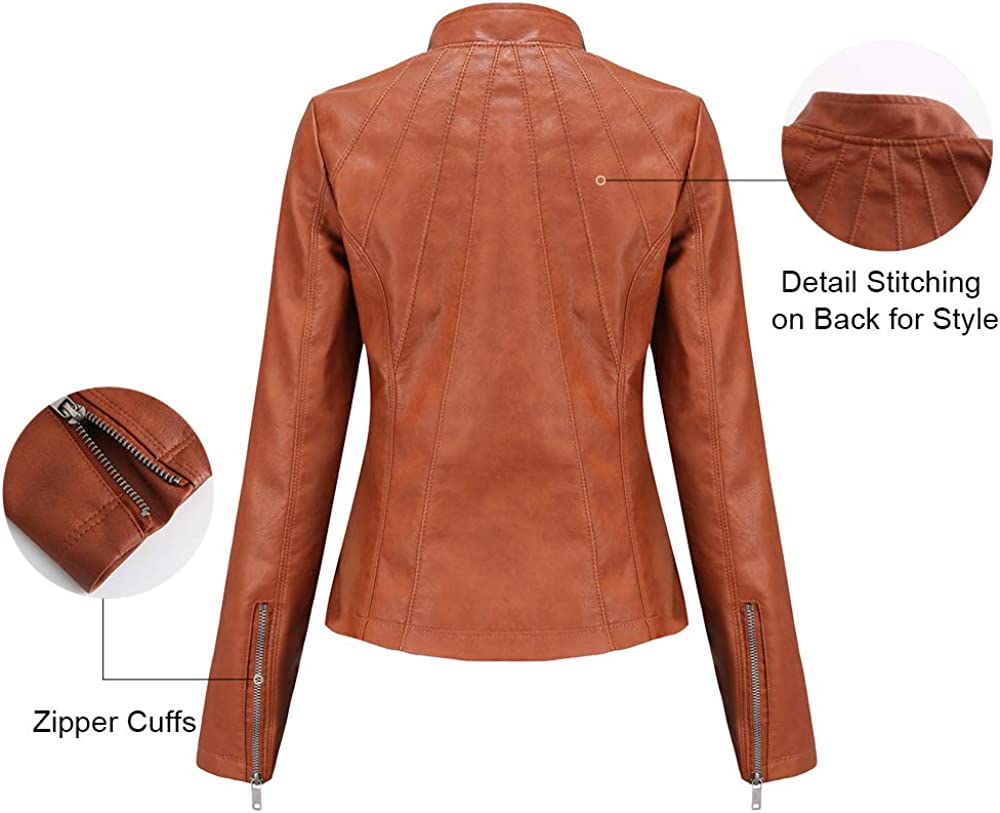 Tagoo Faux Leather Jacket Women Bomber Jacket Cropped Jacket Moto Coat for Biker with Belt