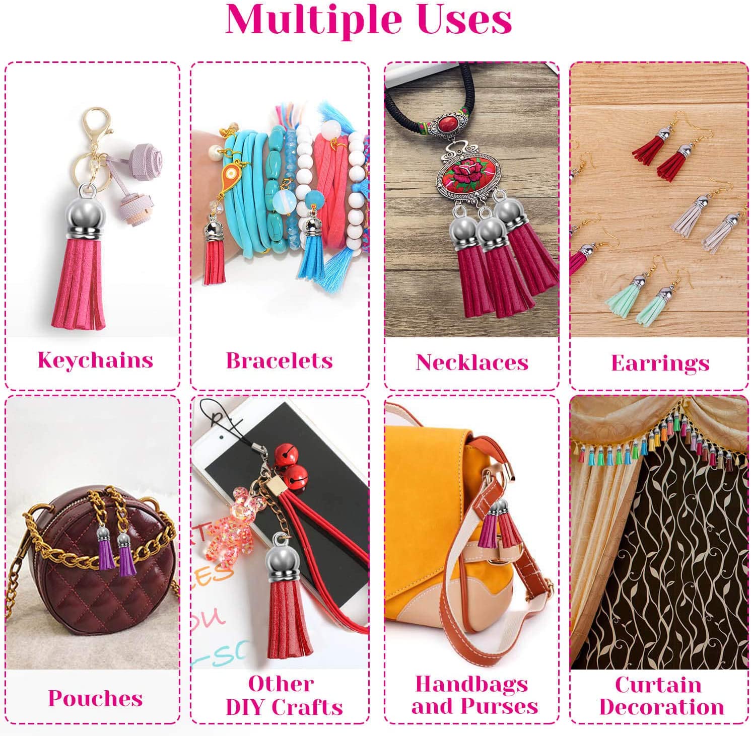 Tassels, Cridoz 200pcs Leather Keychain Tassels Bulk for Crafts, Keychains Supplies, Acrylic Keychain Blanks, Charms, Earrings, Bracelets and Jewelry Making (40 Colors)