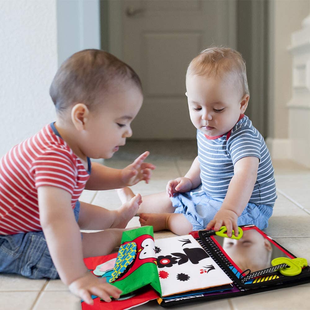 teytoy Tummy Time Floor Mirror with Crinkle Cloth Book and Teethers, High Contrast Black and White Baby Toys, Developmental Montessori Sensory Crawling Toy for Newborn Infant Toddler 0 3 6 Months Gift