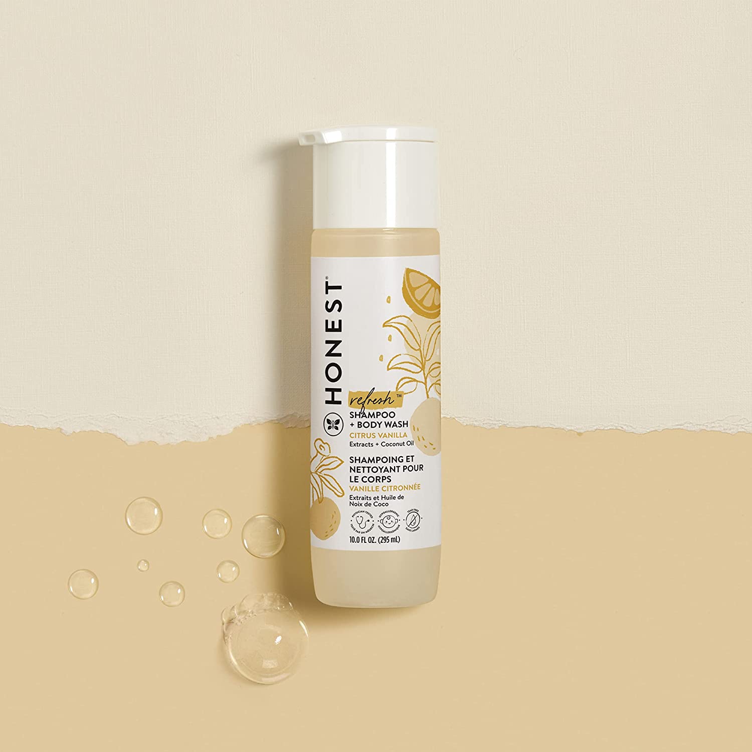 For a revitalizing pick-me-up at any time of the day, this citrus vanilla-scented tear-free shampoo + body wash is perfect to refresh and reset. Made with chamomile extract, aloe and other naturally derived ingredients, this 2-in-1 formula cleanses from head to toe. Gentle enough for babies, but great for the whole fam.