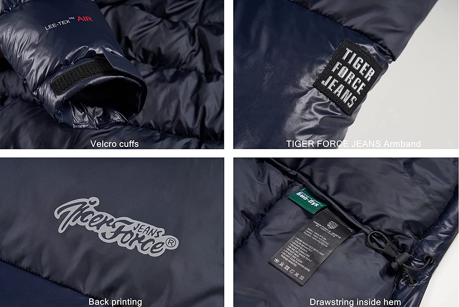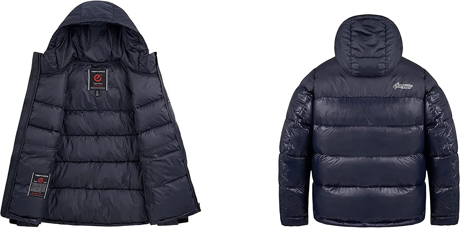 TIGER FORCE Men's Hooded Puffer Jacket Water resistant Heavyweight Sportswear Snow Coat Warm Black Dark Blue