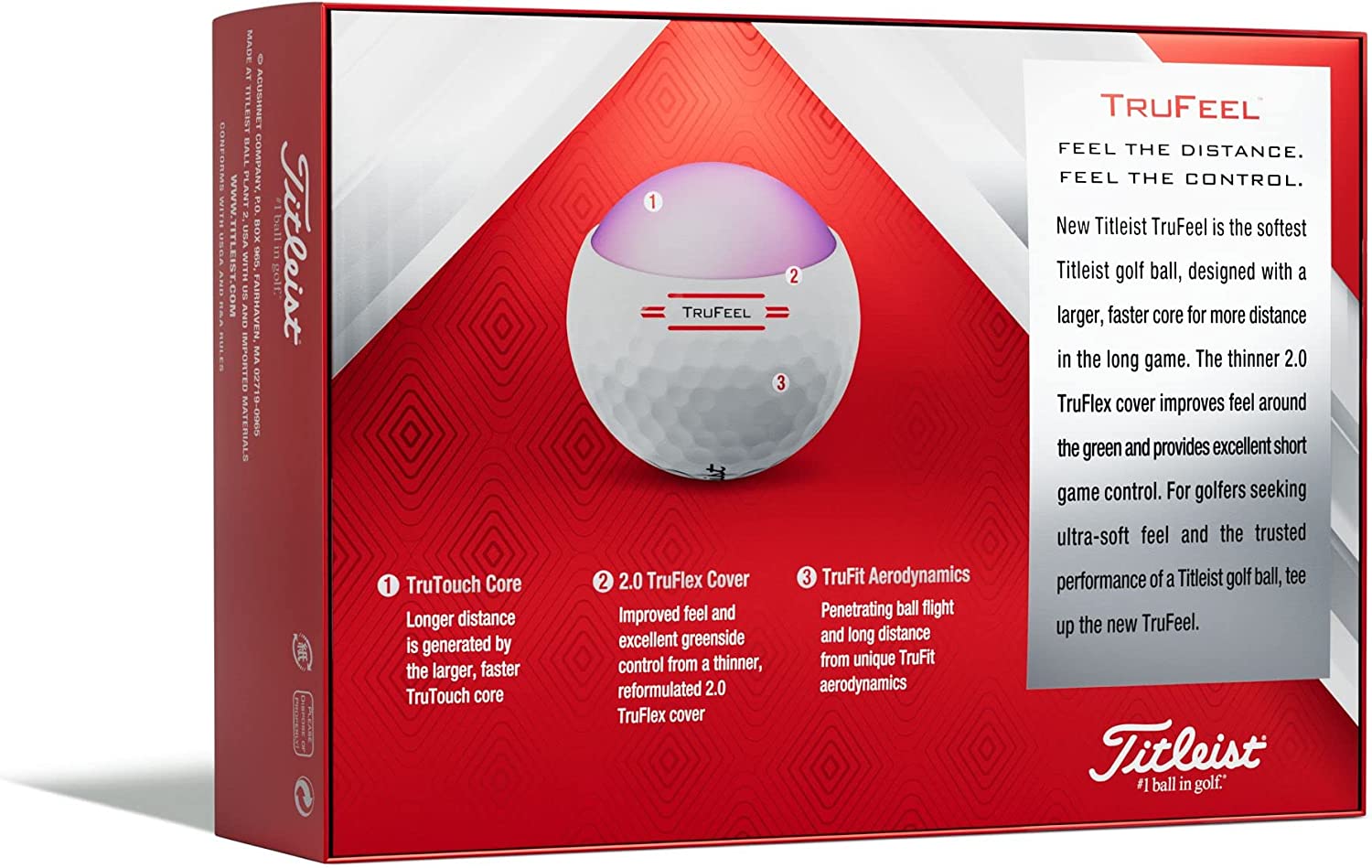 New Titleist TruFeel is the softest Titleist golf ball re-designed with a larger, faster core for more distance in the long game. The thinner 2.0 TruFlex cover improves feel around the green and provides excellent short game control. For golfers seeking ultra-soft and the trusted performance of a Titleist golf ball, tee up the new TruFeel.
