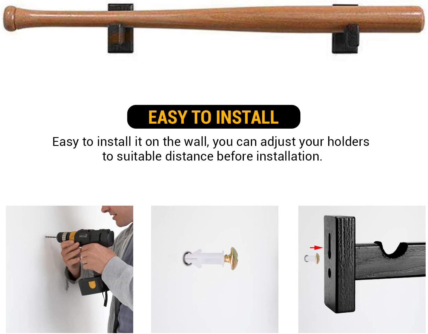 Make your bat an eye-catching display to your all guests and have easy access to grab it when you need it.