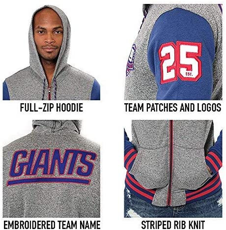 Ultra Game NFL mens Full Zip Soft Fleece Hoodie Letterman Varsity Jacket