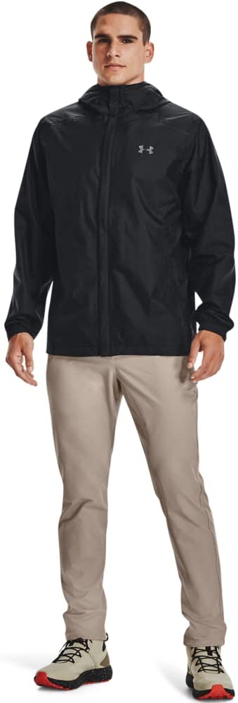 UA Storm technology repels water without sacrificing breathability .100% waterproof & breathable, with fully taped seams .10k/10k Rating .Windproof materials & construction shield you from the elements .2-layer bonded fabric with a durable, smooth exterior .Full mesh lining for added breathability .Adjustable hem & hood .Secure hand pockets .Elastic cuffs .