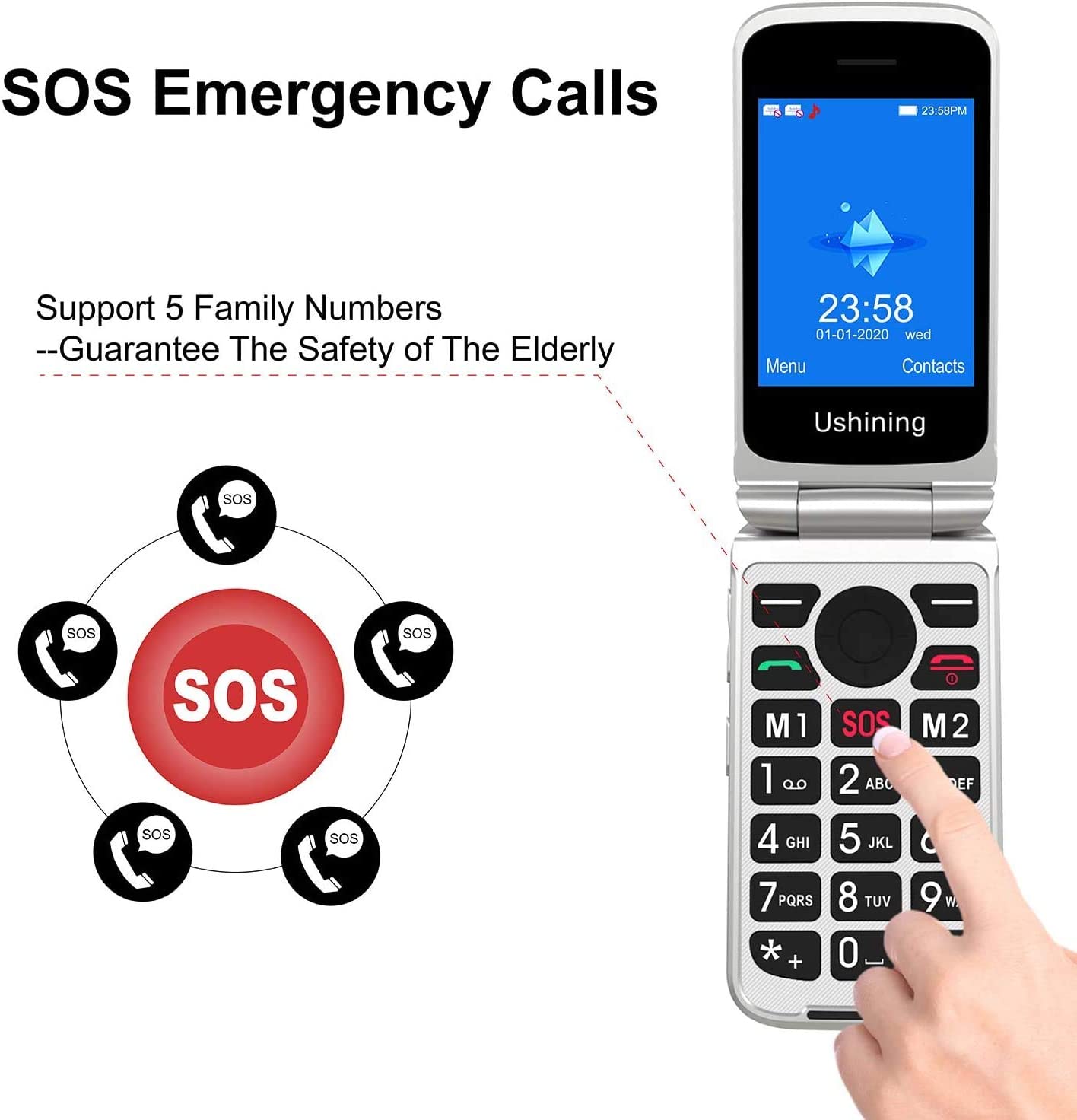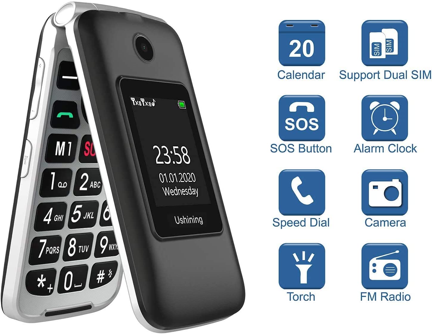 Ushining 3G Unlocked Flip Cell Phone for Senior and Kids, Easy-to-Use Big Button Cell Phone with Charging Dock, AT&T Suitable (Black)