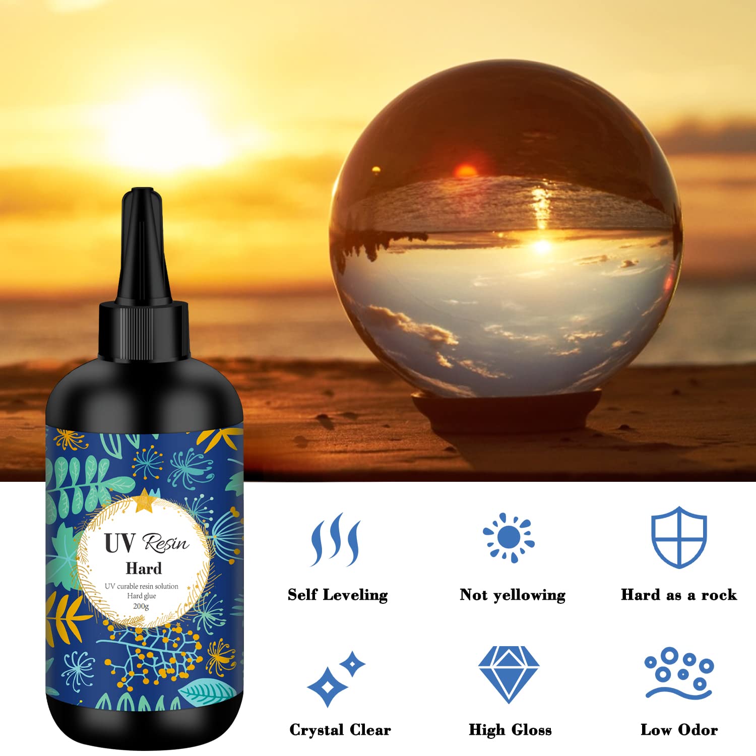 UV Resin 200g Transparent Ultraviolet Curing Clear Hard Type Resin, Solar Cure Resin for DIY Resin Jewelry Making