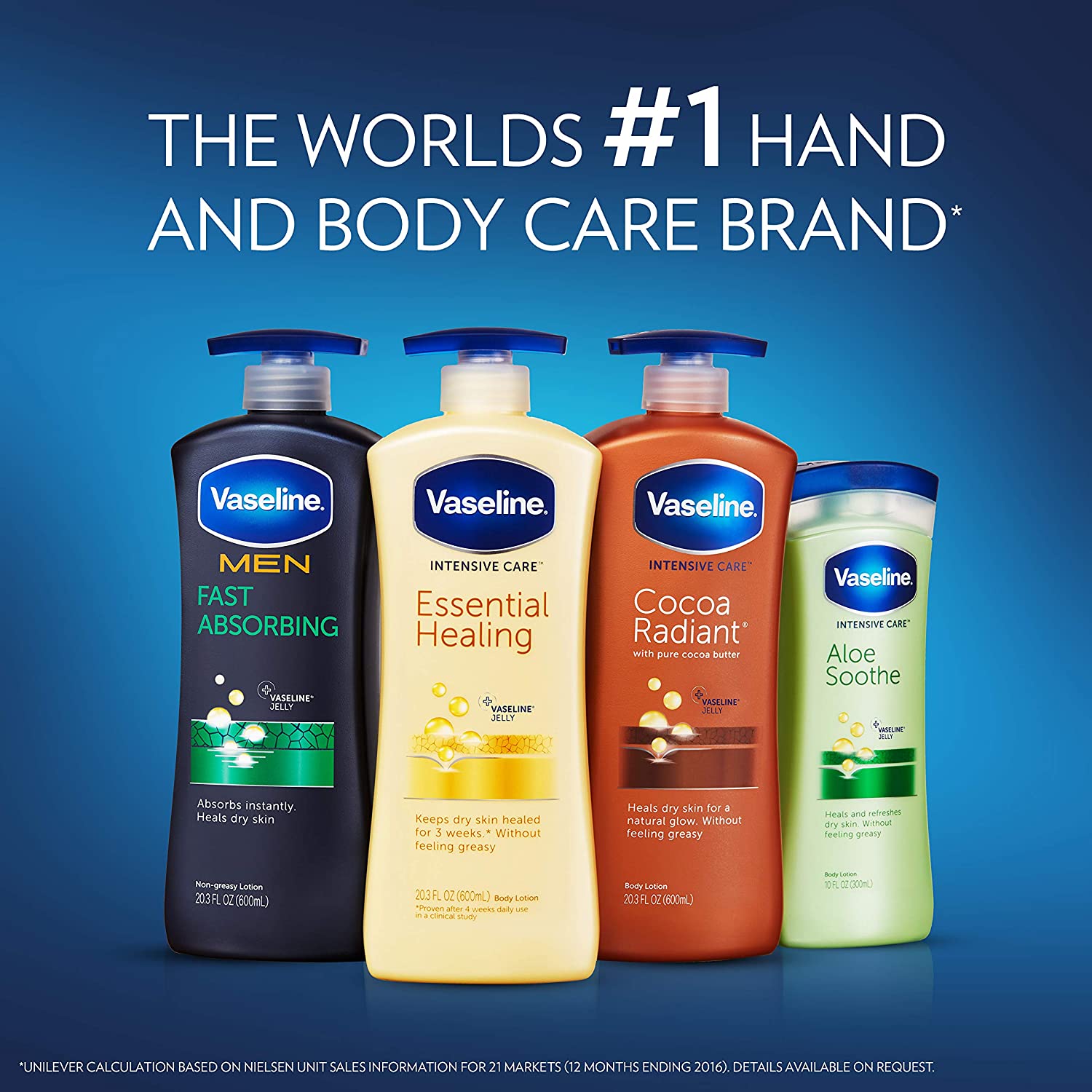 Vaseline Intensive Care Essential Healing Body Lotion provides fast-absorbing moisture to deeply moisturize dry, rough skin. Clinically proven to keep skin healed for 3 weeks (after using daily for 4 weeks), this non-greasy, fast-absorbing skin lotion is your go-to dry skin moisturizer. Vaseline’s moisturizing lotion goes beyond basic moisturization. Our Intensive Care range works to heal dry skin from deep within. Essential Healing contains glycerin, which draws and binds moisture to skin, and healing micro-droplets of Vaseline Jelly that lock in moisture, allowing the skin’s natural barrier to recover. The formula used in this body moisturizer for dry skin restores the essential moisture your skin needs, while also delivering a blend of nourishing ingredients. Vaseline Essential Healing lotion is the perfect daily body lotion and hand lotion for maintaining smooth, soft skin. The non-greasy formula relieves dry skin quickly by penetrating deep into skin’s layers, and it helps smooth rough skin, so skin feels soft and healthy. Infused with aloe vera, an ingredient that is known to help calm and soothe skin, smooth, hydrated skin can be yours with Vaseline Intensive Case Essential Healing lotion. Many of Vaseline’s dry skin lotions contain petrolatum to give your skin the extra care it needs. Explore our other Vaseline products and enjoy the healing power of Vaseline. We’re proud to be working with Direct Relief in our mission to promote better skin health for everyone around the world. The Healing Project provides dermatological care, Vaseline® Jelly and medical supplies needed to help heal the skin of people affected by poverty or emergencies around the world.