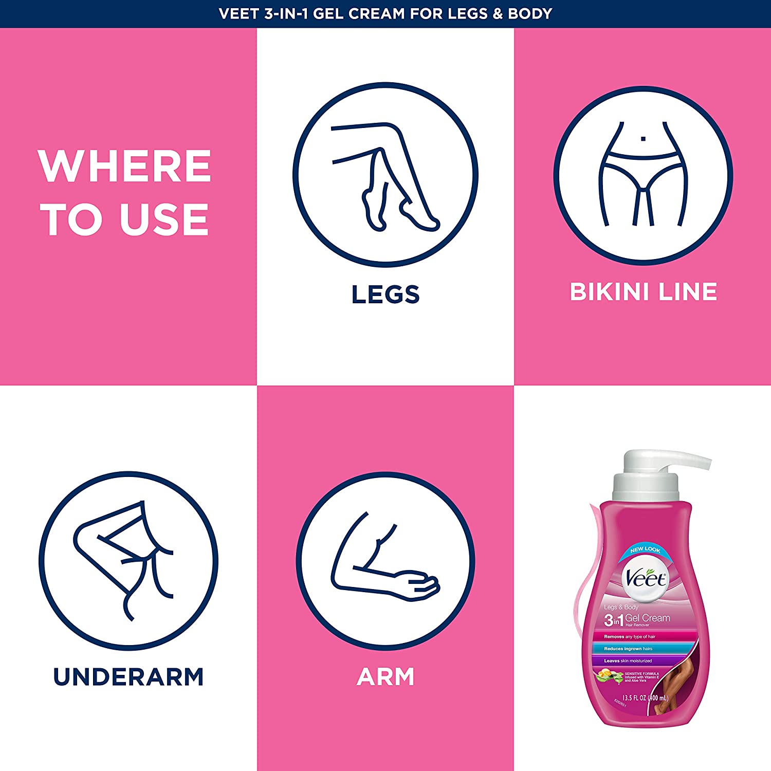 Now live more spontaneous moments with Veet Hair Remover Cream that removes even stubborn hair in just few minutes. Enriched with active ingredients such as Aloe Vera and Vitamin E, this hair removal cream for women moisturizes, leaving your skin feeling smooth and soft. The sensitive hair removal cream comes with delightful fragrance of Vanilla and Passion Fruit for a satisfying and breathtaking experience. This aloe vera hair removal cream is dermatologically tested and can be used for legs, arms, underarms and bikini hair removal. The results of Veet may last up to twice as long as shaving. It comes in a pump bottle with a spatula for easy dispensing, applying and removal. Suitable for: Creams can be used by everyone, including pregnant women. Teenagers under 16 are supposed to be supervised by an adult when using any depilatory method. Caution: Before every use, test your skin by applying and removing the product to a small part of the area as skin is a sensitive part of the body. If after 24 hours, there is no adverse reaction, continue to use. Veet cream is not suitable for use on head, face, eyes, nose, ears, around the anus, genitals and nipples. Read pack for full instructions before use. Do not exceed 10 minutes total application time.
