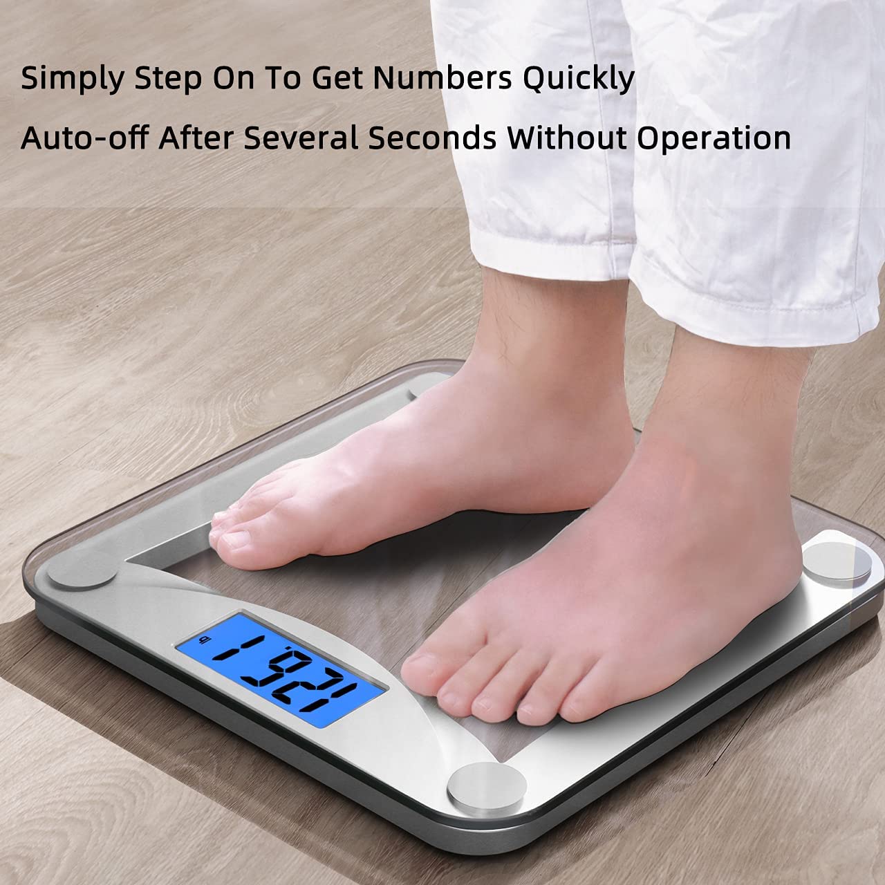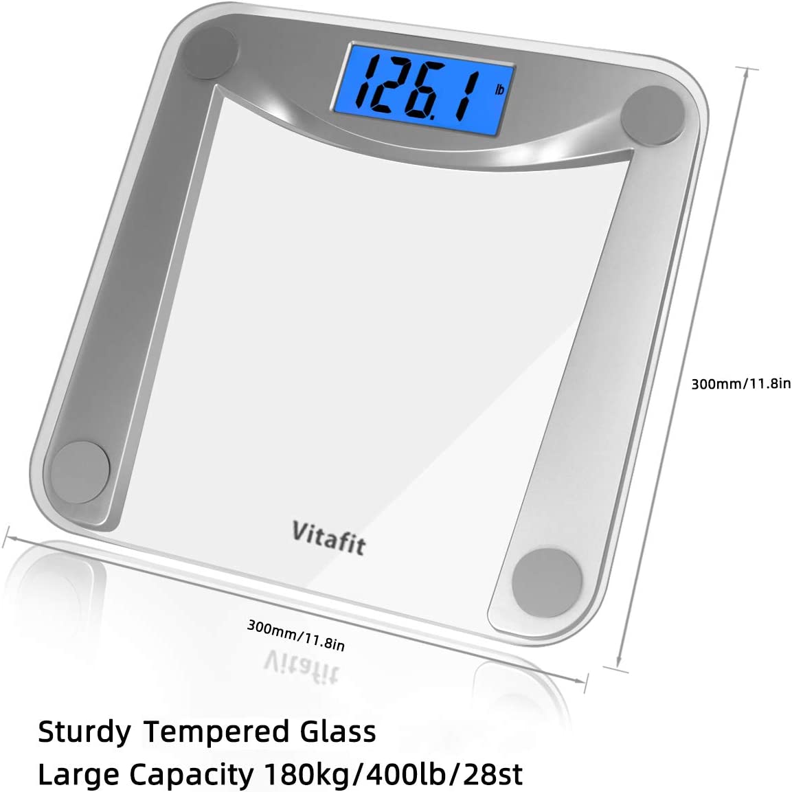 Vitafit Digital Body Weight Bathroom Scale,Focusing on High Precision Technology for Weighing Over 20 Years, Extra Large Blue Backlit LCD and Step-On, Batteries Included, 400lb/180kg,Clear Glass