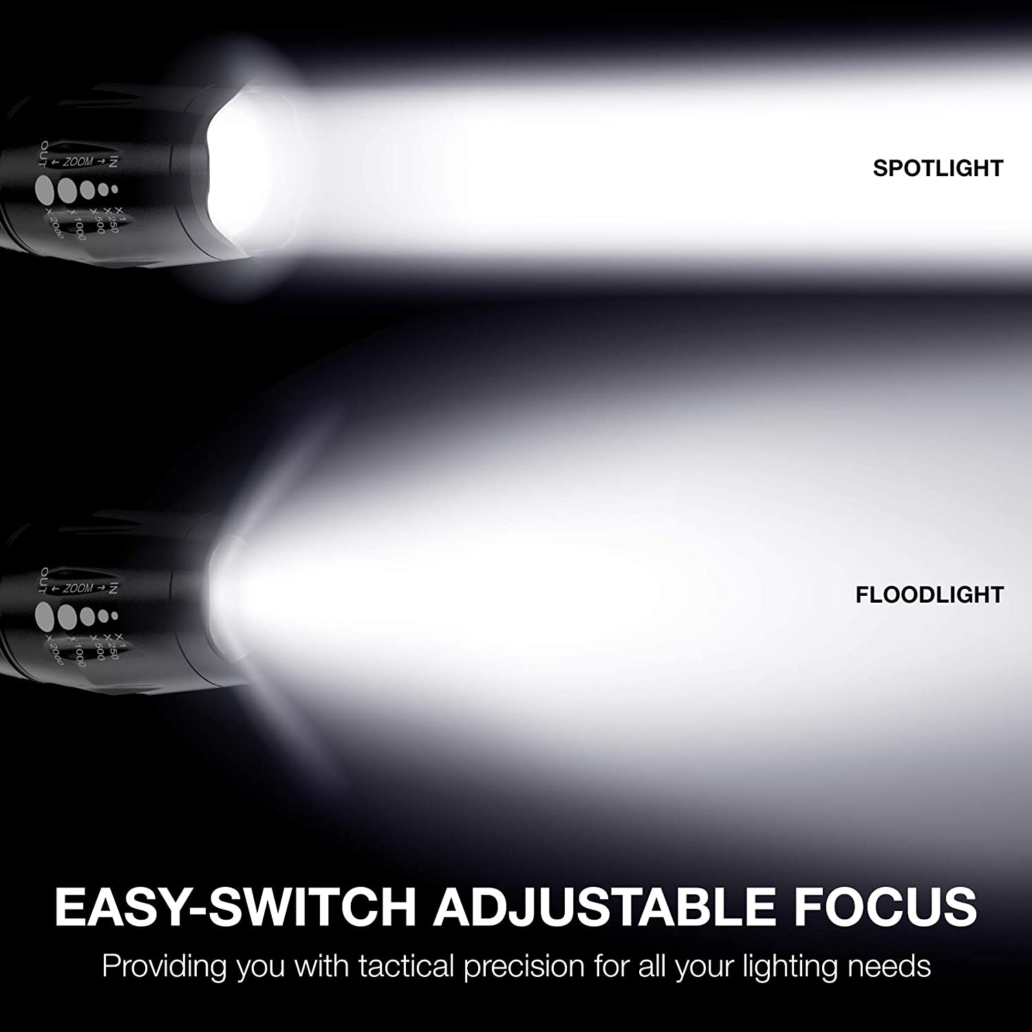 Vont LED Tactical Flashlight, [2 Pack] 2X Longer Battery Life, 5 Modes, High Lumen, Adjustable, Zoomable,Waterproof, Lightweight,Bright Flashlights/Flash Light Gear/Accessories/Supplies for Camping