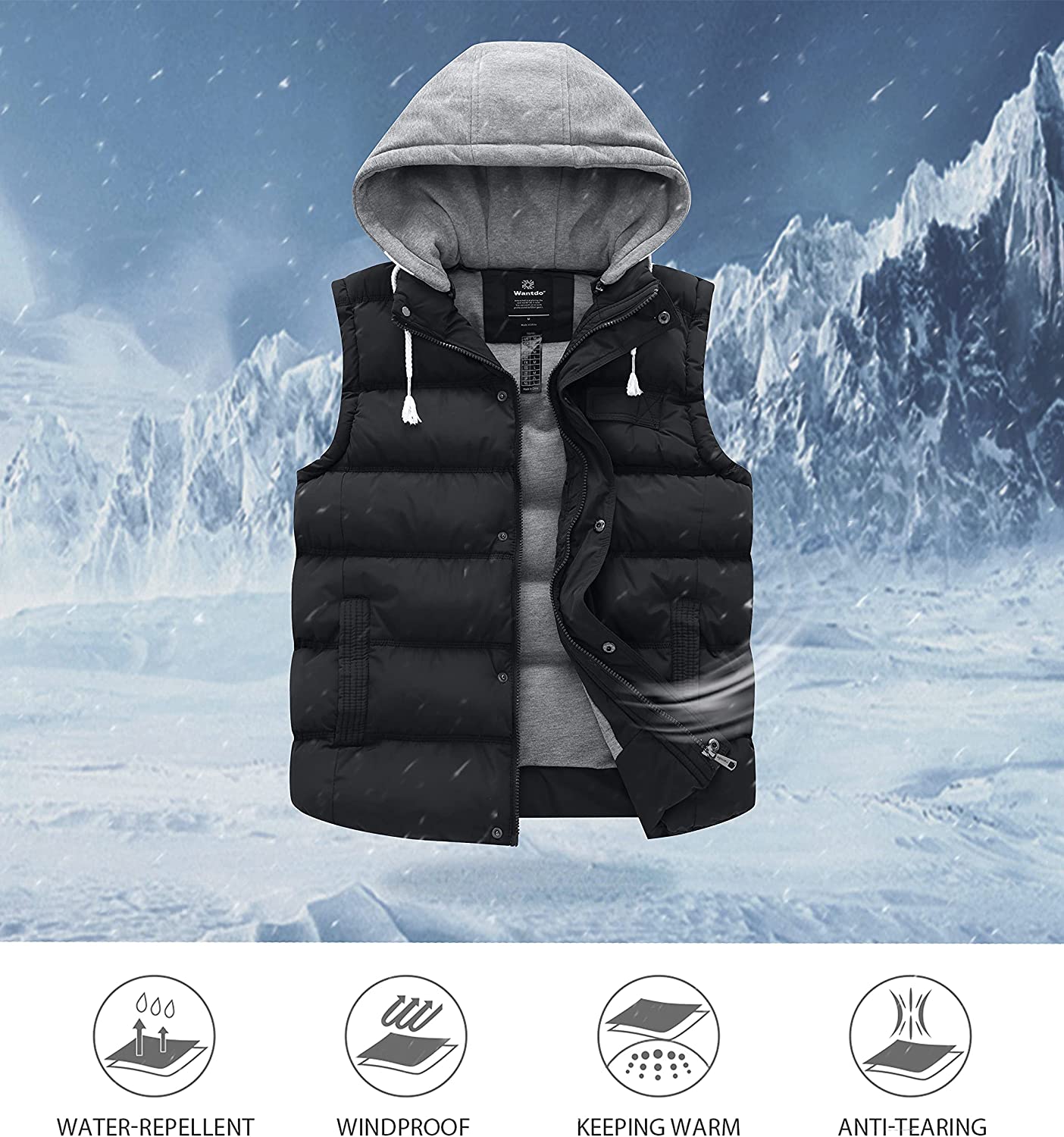 Wantdo Women's Quilted Puffer Vest Thicken Warm Winter Coat with Removable Hood