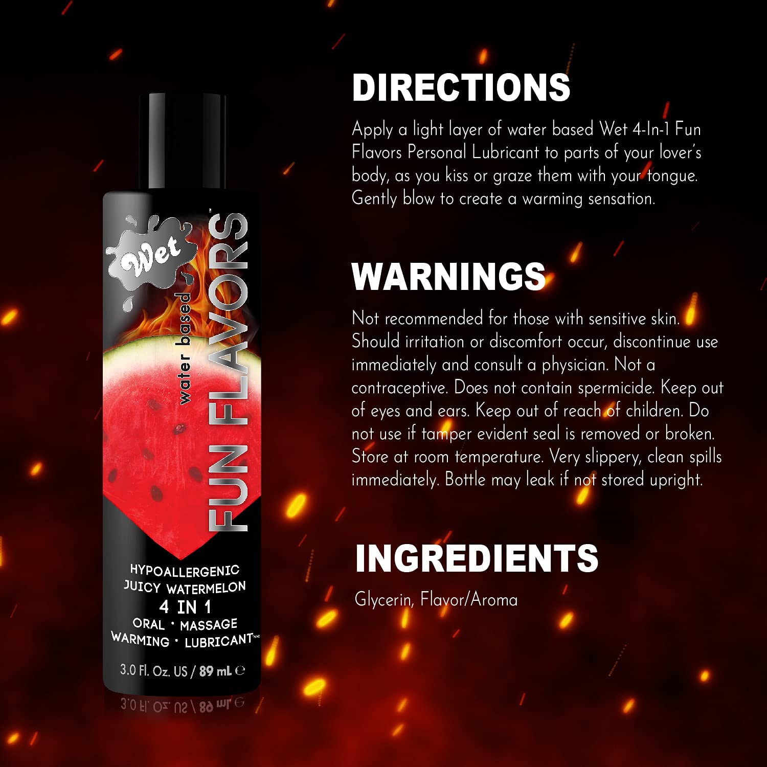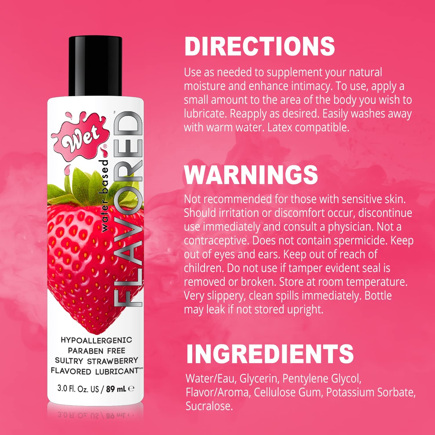 DELICIOUS FLAVORS: Tastes like the real thing, Wet Fruit Flavored Edible Lubricants are a fun way to introduce oral sex to a partner who might be a little hesitant. Apply a few drops of lube to erogenous zones and invite your partner to discover them one by one. Water Soluble: Wet Fruit Flavored Lubricants are pure water based, these formulas are gentle enough for sensitive skin and provide long lasting silkiness. These lubes are latex friendly, washes away easily with warm water and are safe for use with all types of toys. Sugar Free & Gluten Free: Wet Flavored Lubricants do not contain sugar, gluten, or dyes, and will not stain sheets. These edible lubes are formulated to indulge guilt free. These delicious flavors taste just like the real thing, with no artificial aftertaste. Paraben Free: Wet Fruit Flavored Lube are free of parabens, which are used in many other lubricants. Parabens have been linked to irritation in those with sensitivity and allergies. Made In The USA: Manufactured by Trigg Laboratories, Formulated in a cGMP compliant laboratory. Manufacturer trusted for over 30 years. Packaging may vary. The look of the bottle has been updated, but this lube still contains the same premium high-quality ingredients as before.