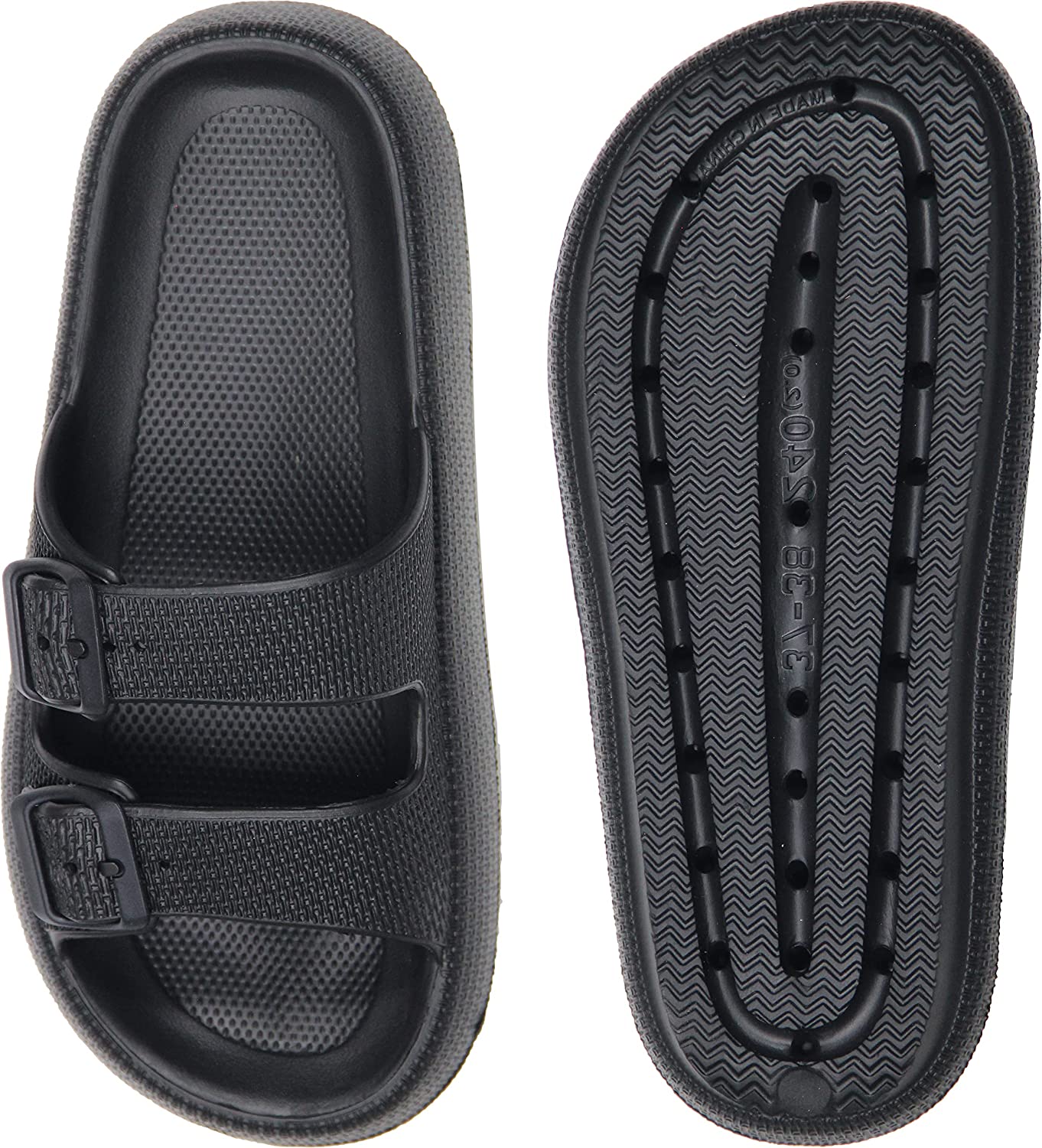 Weweya Pillow Slippers for Women and Men - Cloud Slides - Double Buckle Adjustable - EVA Flat Sandals