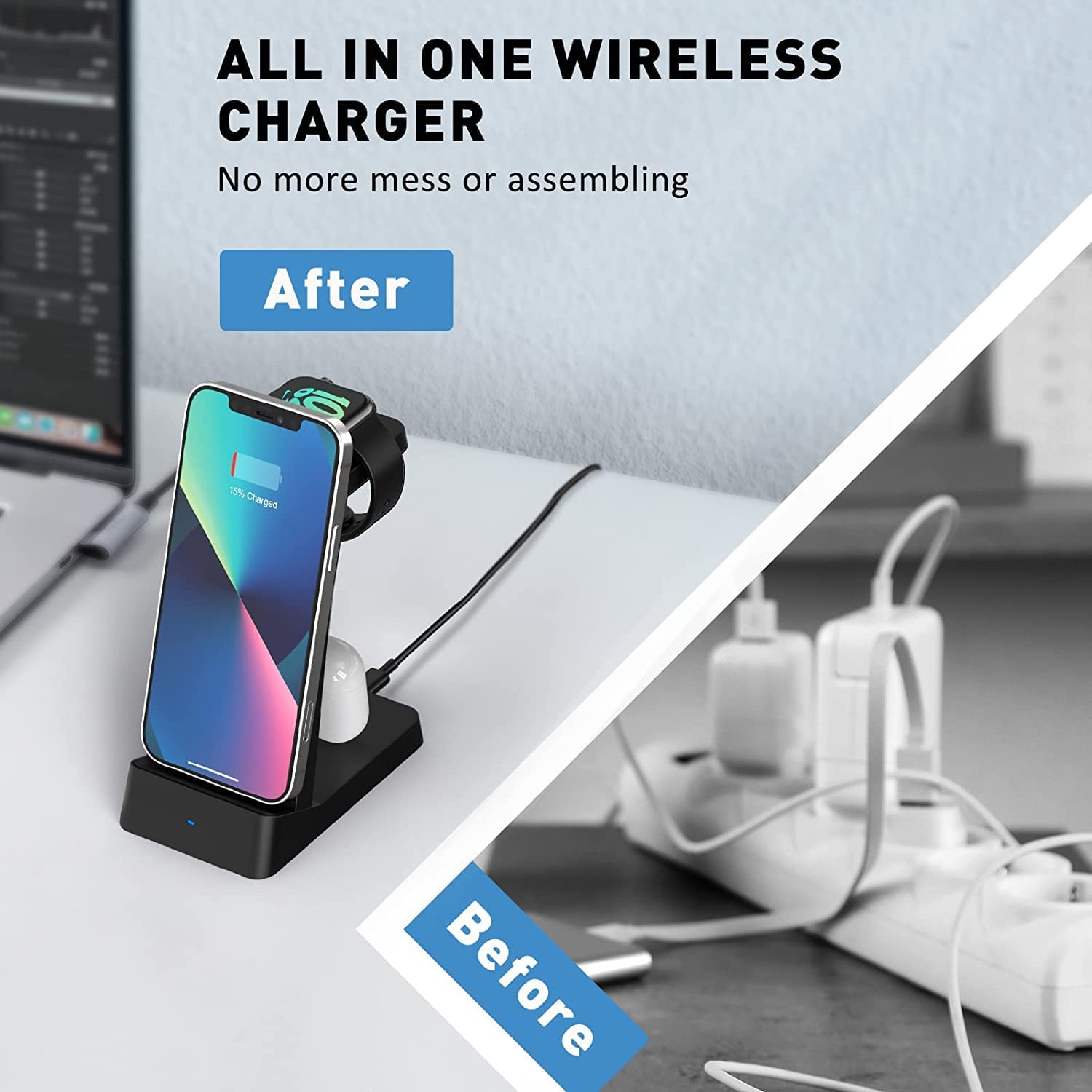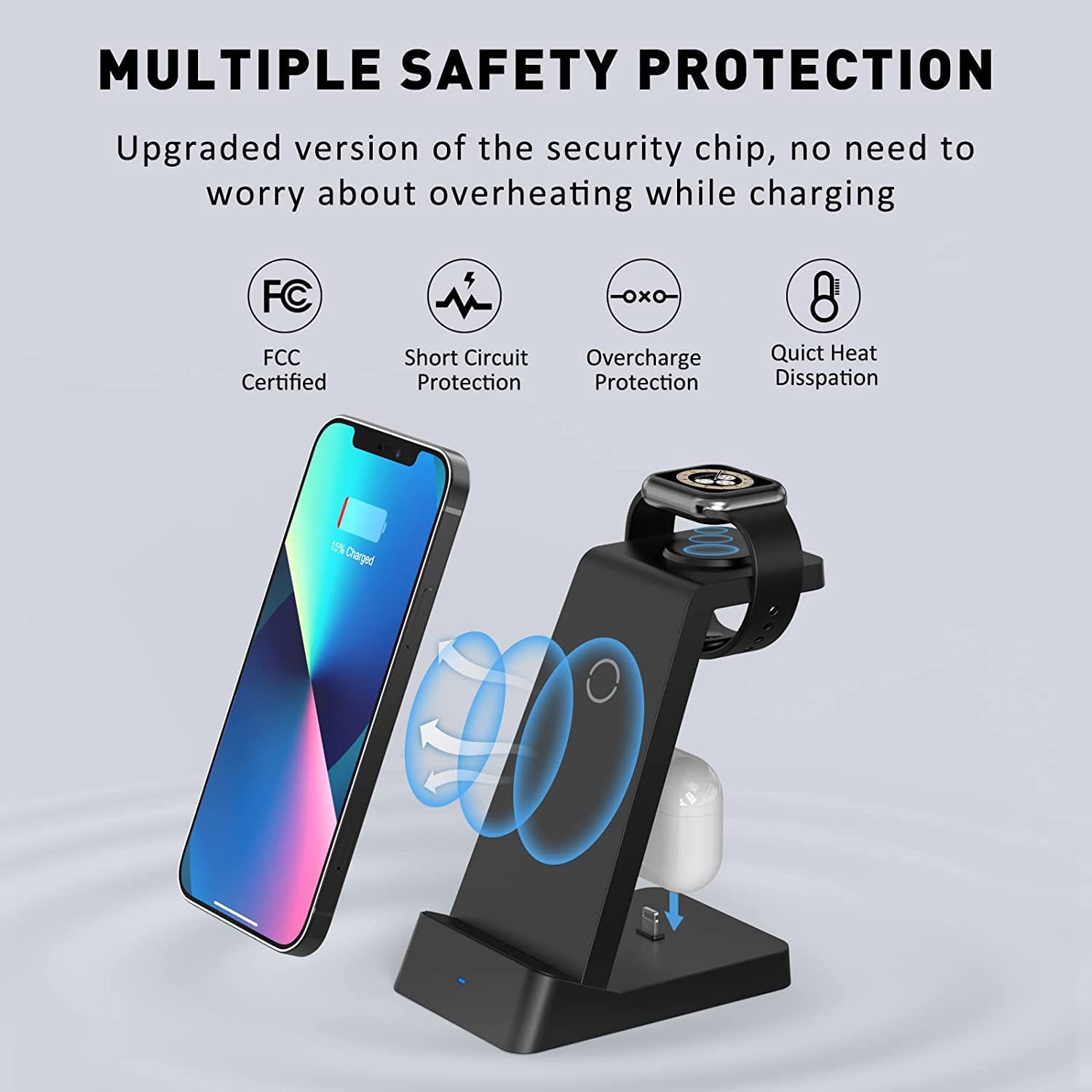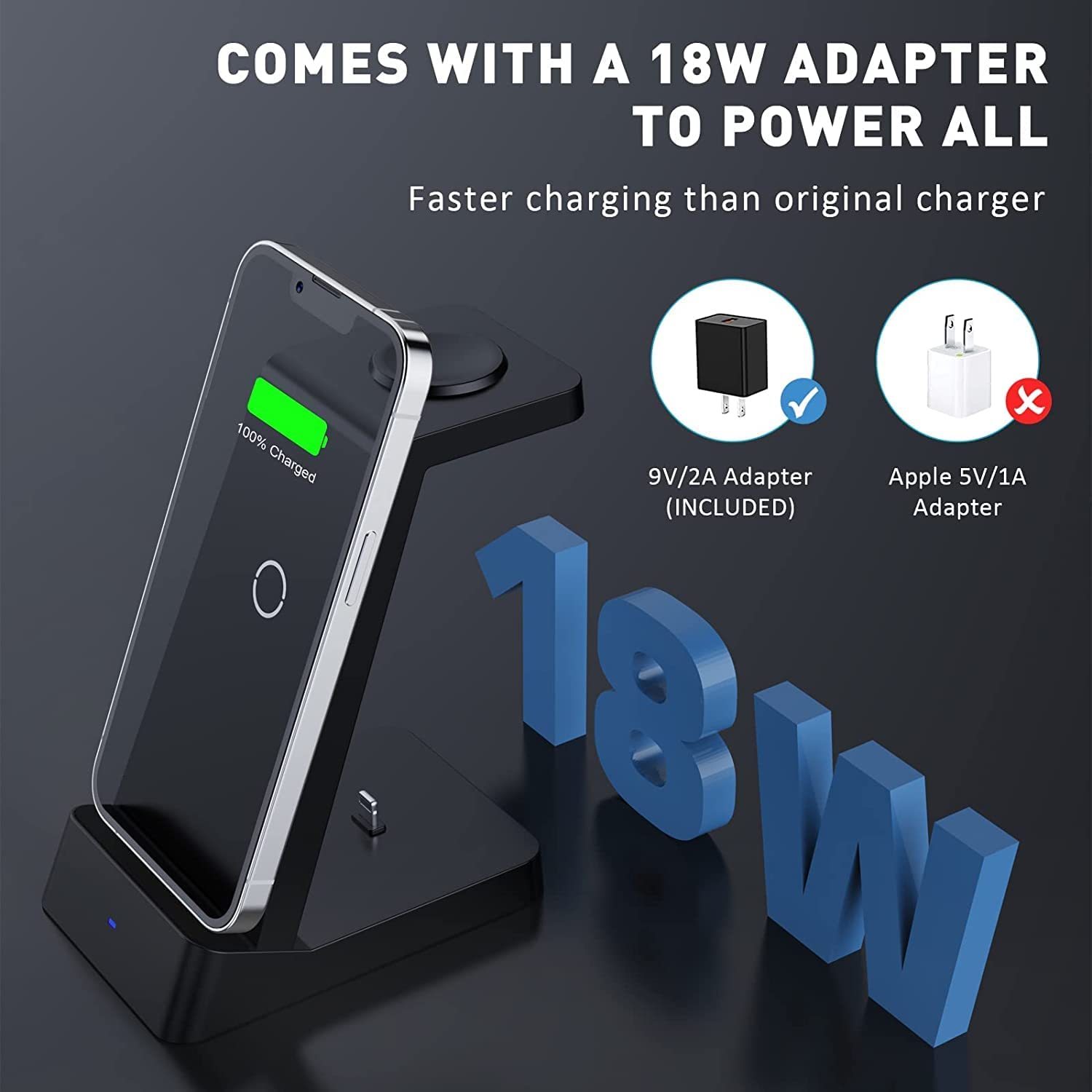 Wireless Charging Station, 18W Fast Wireless Charger Compatible with iPhone 13/12/11/Pro/SE/XS/XR/X/8 Plus/8, 3 in 1 Wireless Charging Dock Stand for Apple Watch Series & Airpods (with Adapter)