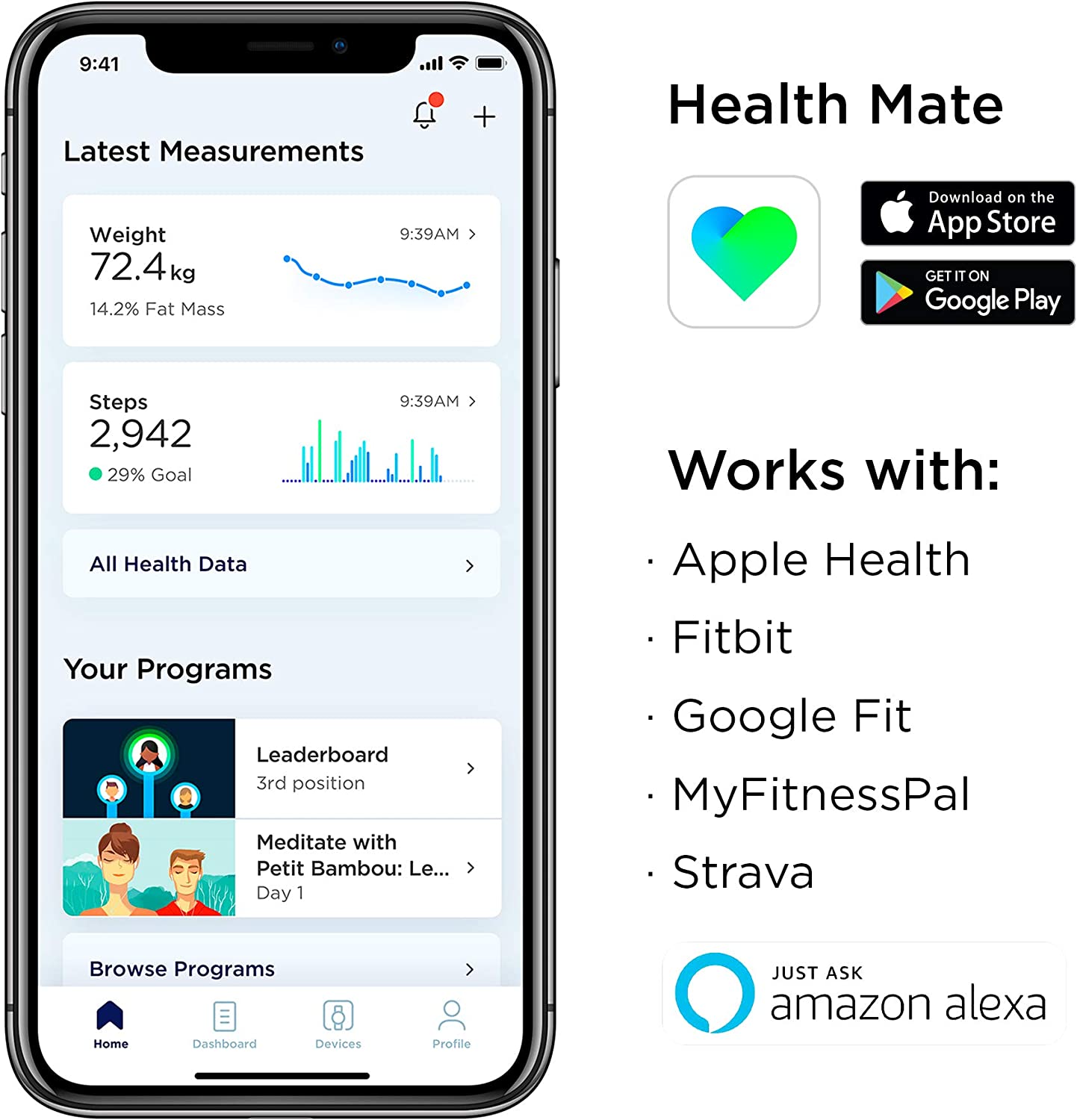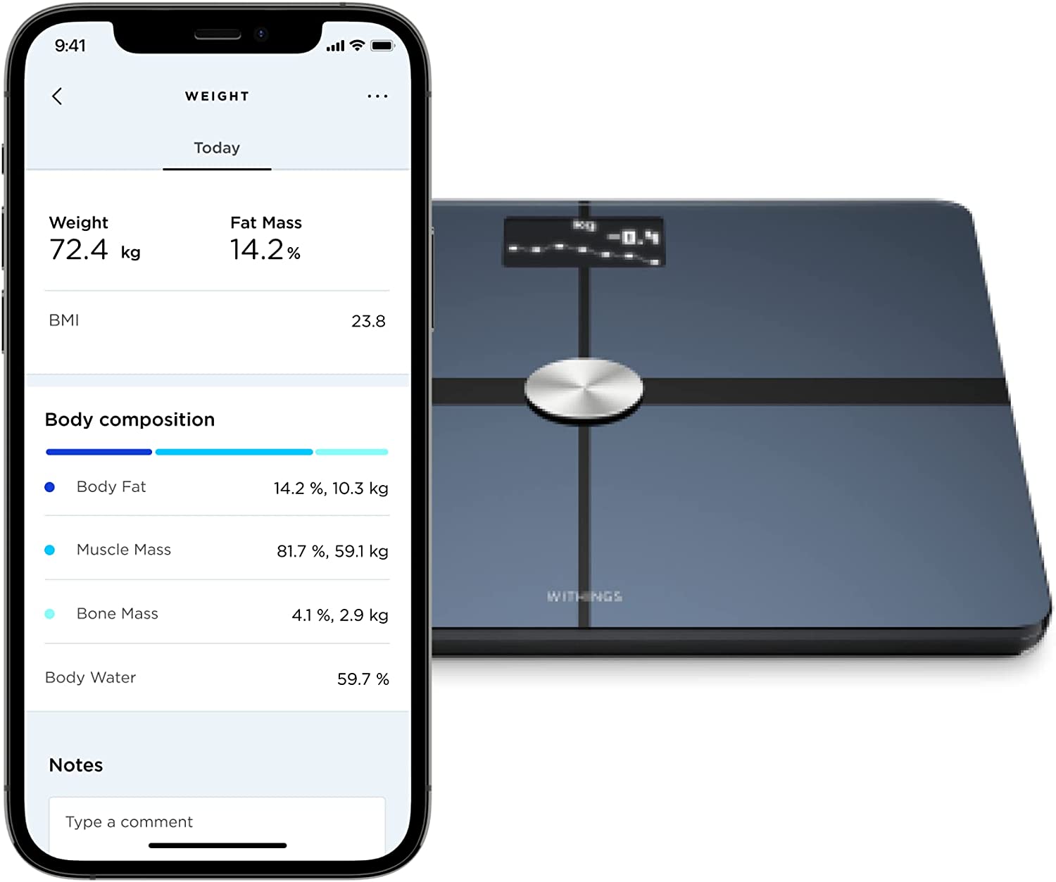 Body+ is a Wi-Fi smart scale that features highly accurate weight (+-0.1kg), full body composition, and seamless tracking in the free Health Mate app (iOS8+ and Android 5+) to help you reach your goals. Syncs with Apple Watch plus more than 100 top health and fitness apps including Apple Health, Fitbit and Google Fit.