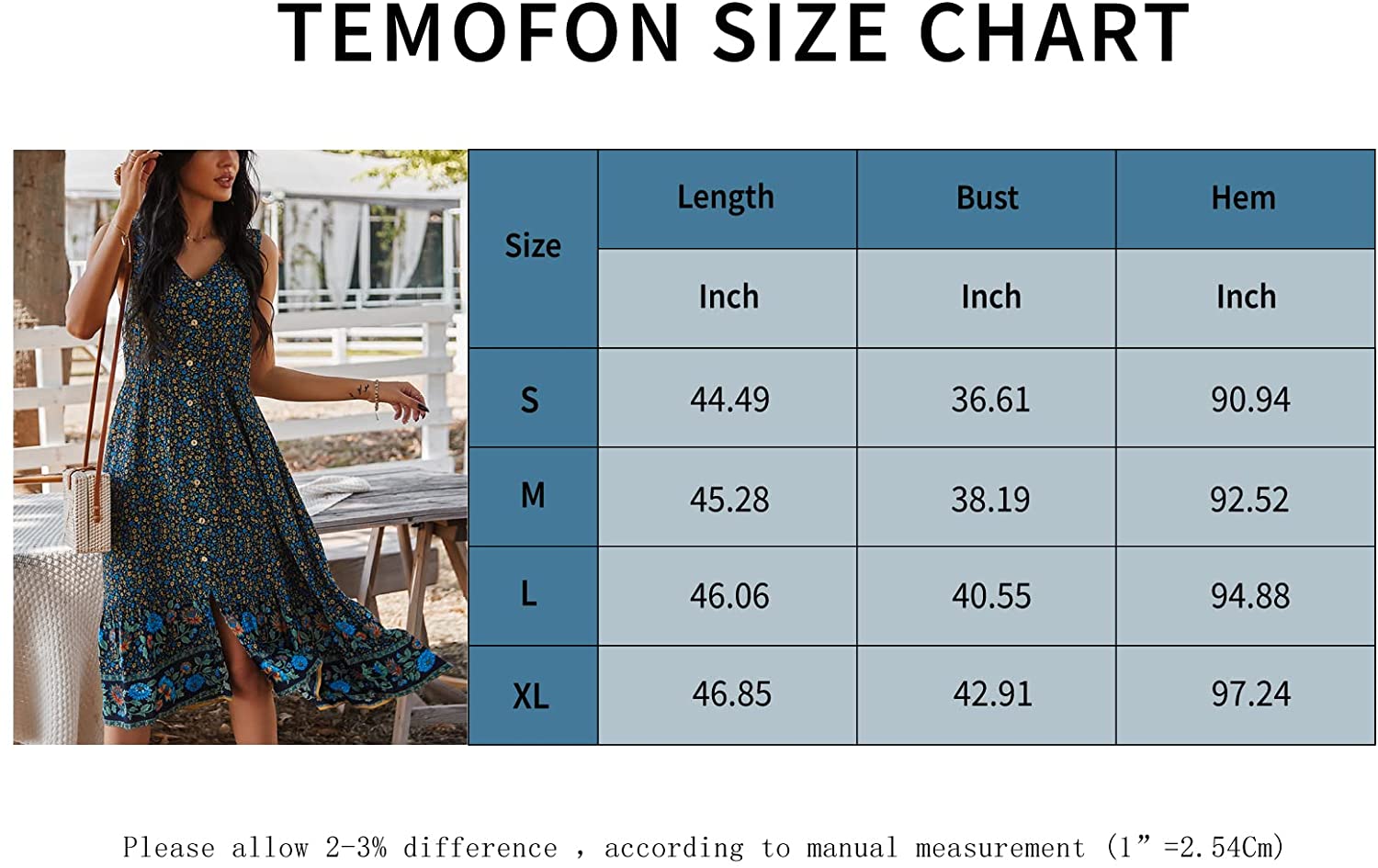 Women Dress Summer Sleeveless Floral Bohemian V Neck Button Down Flowy Dresses S-XL