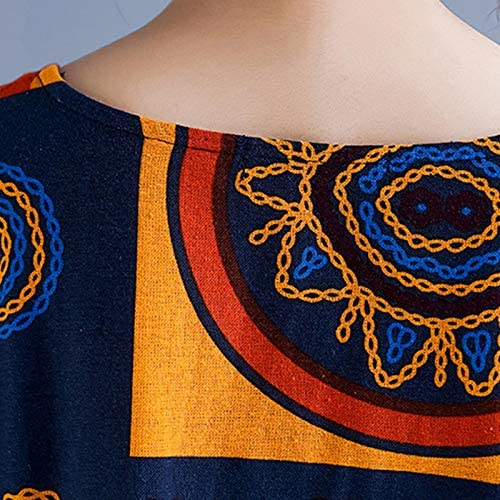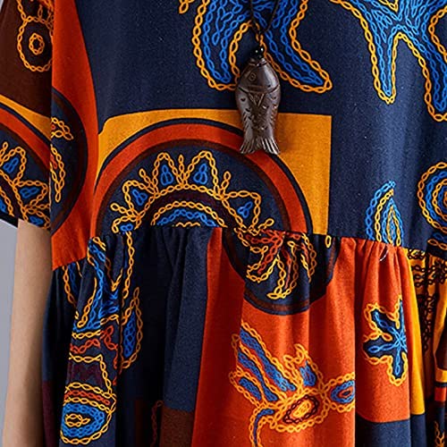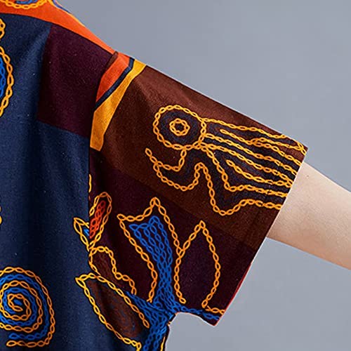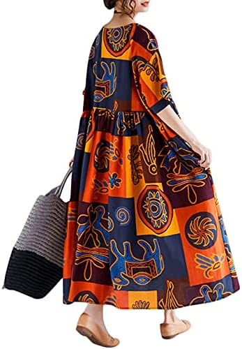 Women Loose Casual Cotton Linen Dress Floral Boho Maxi Dress Contrast House Robes Half Sleeves Plus Size