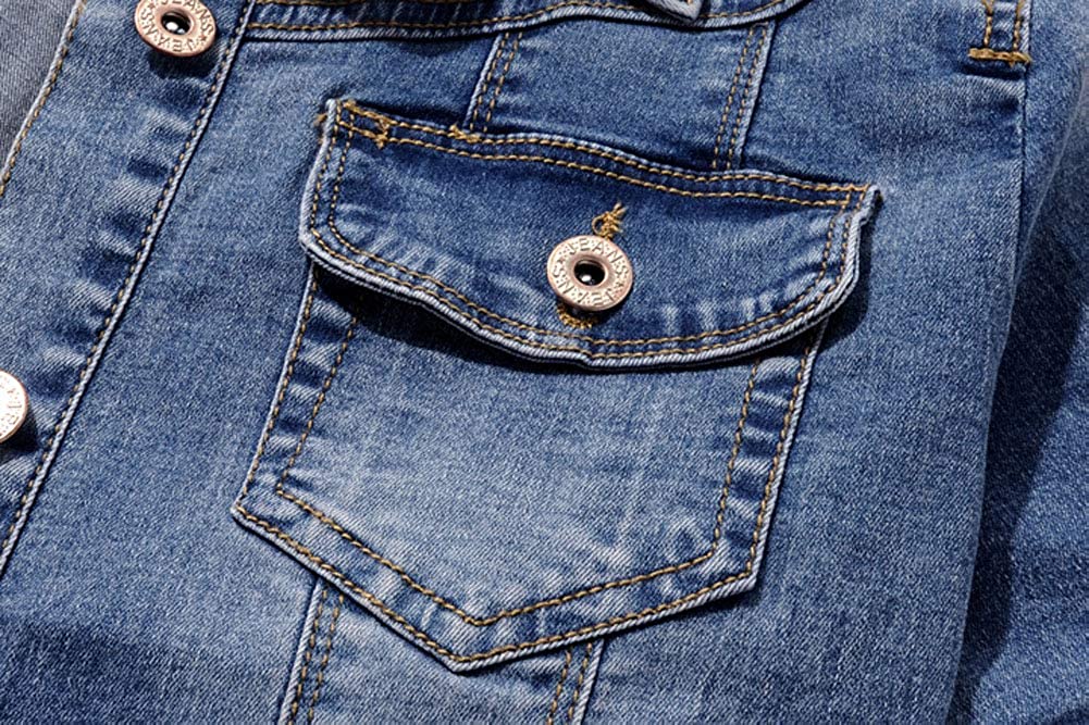 Women Short Sleeve Denim Jacket Button Down Shawl Stretch Denim Jean Jacket