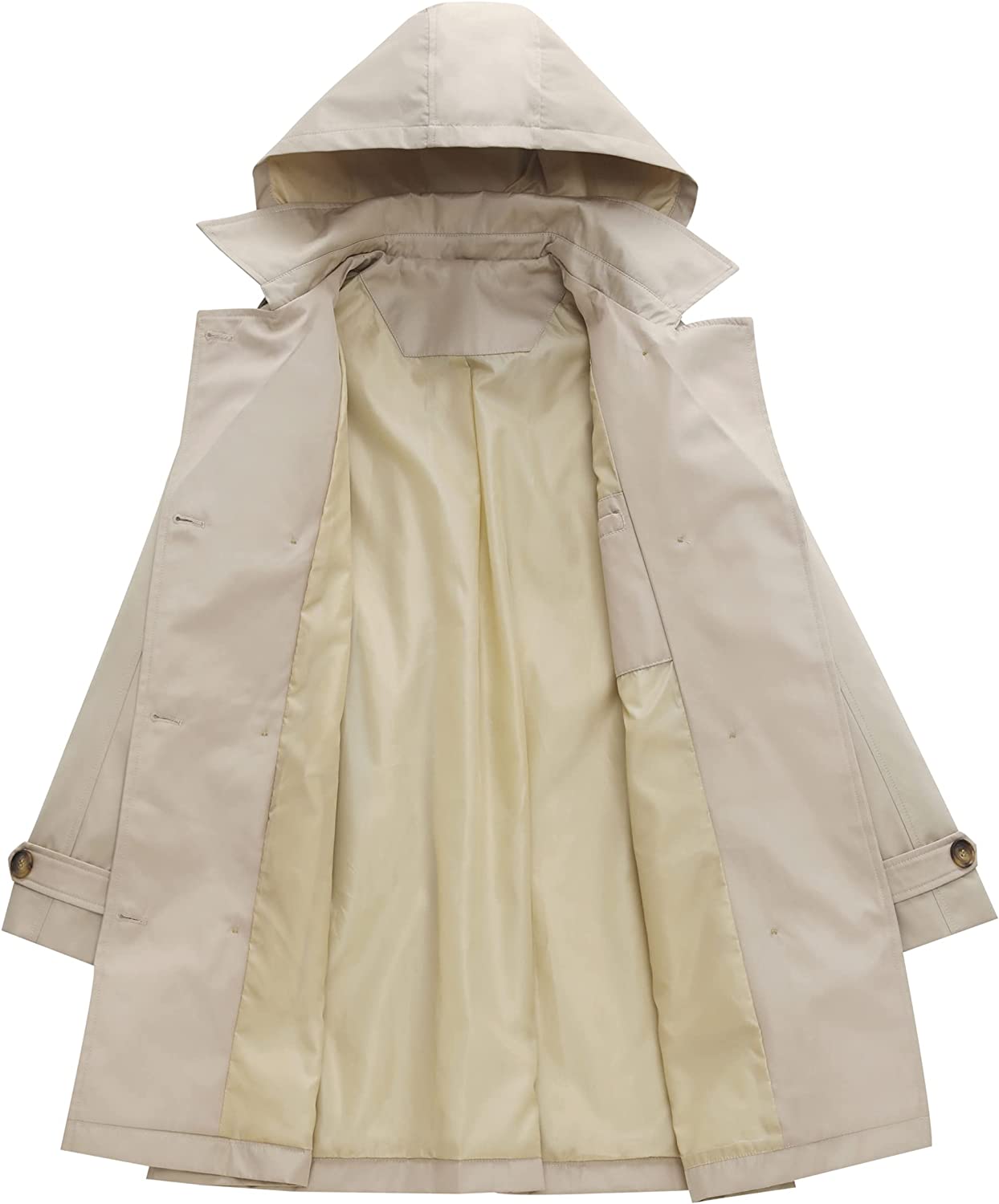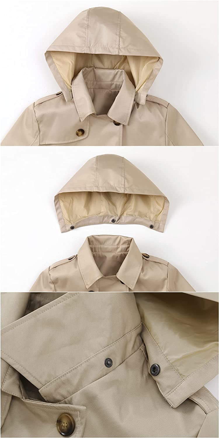 Women's Double Breasted Trench Coats Mid-Length Belted Overcoat Long Dress Jacket with Detachable Hood