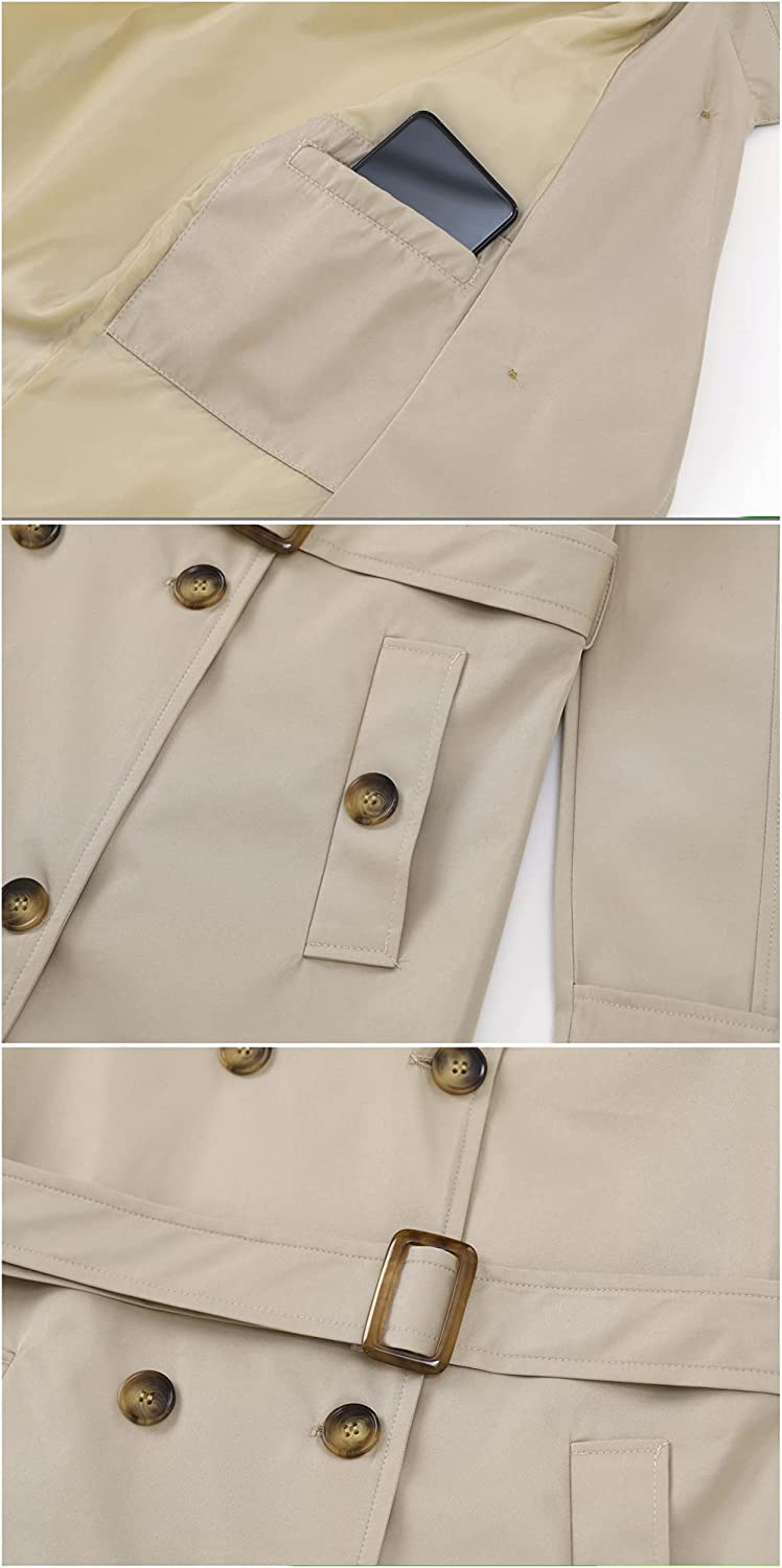 Women's Double Breasted Trench Coats Mid-Length Belted Overcoat Long Dress Jacket with Detachable Hood