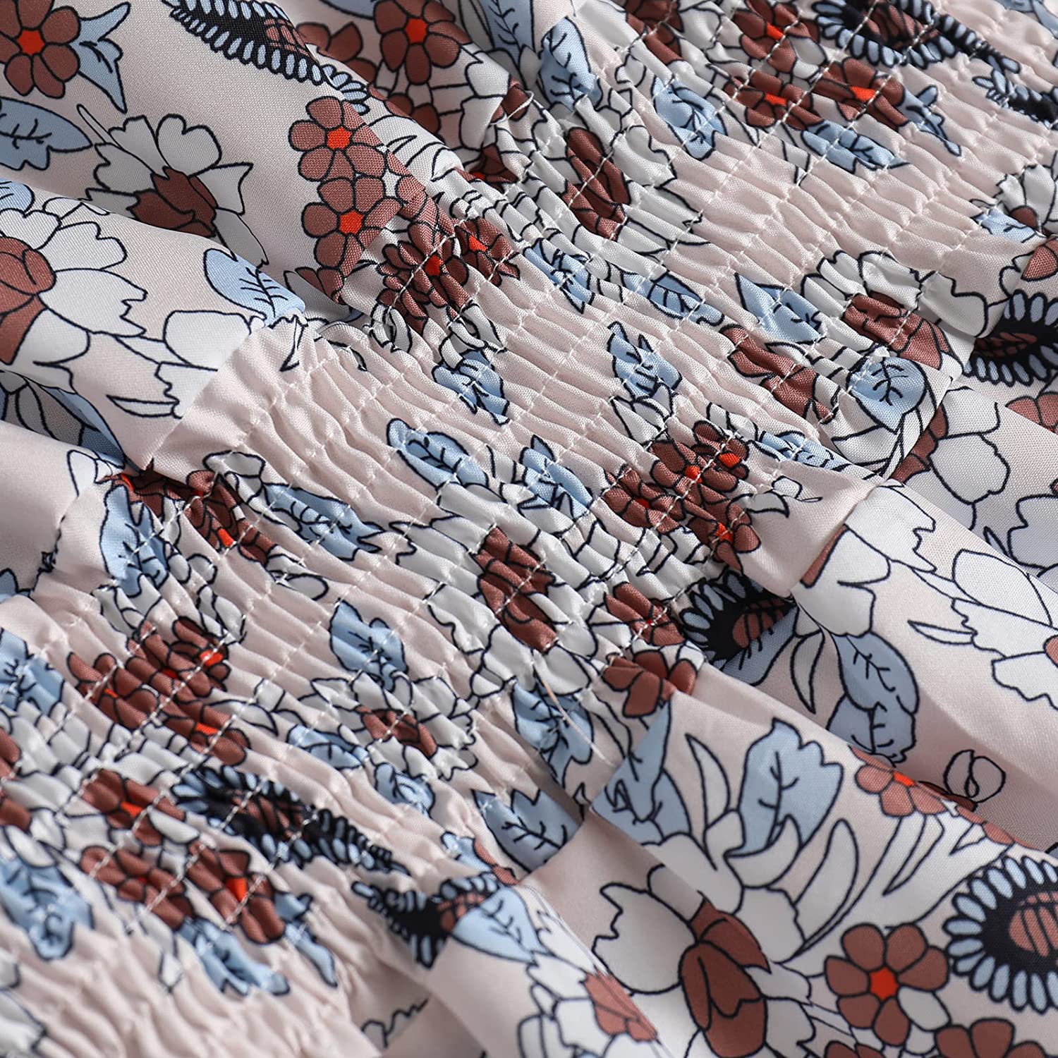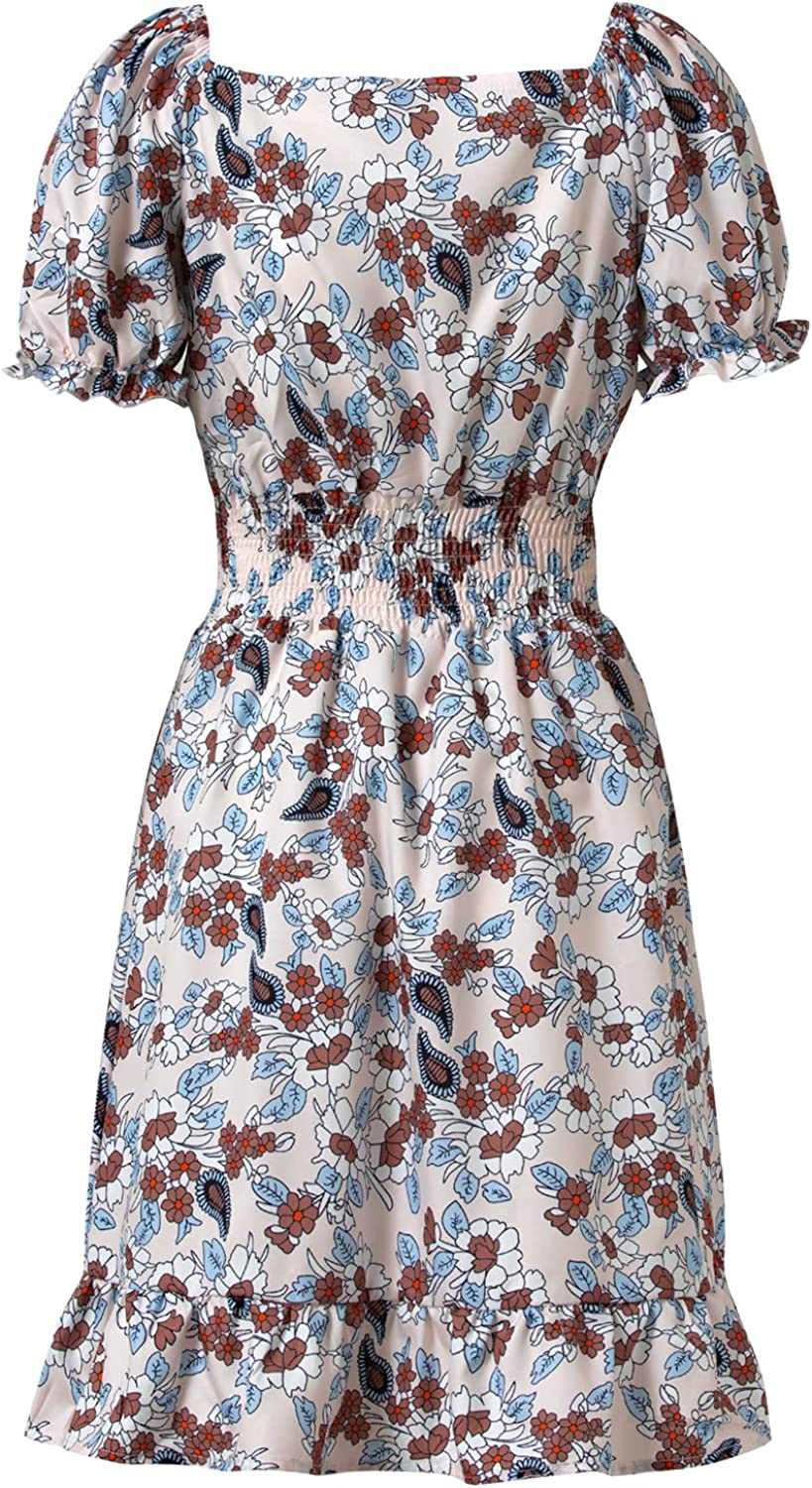 Women's Floral V-Neck Short Sleeve Dress Ruffle Slim Waist Dress