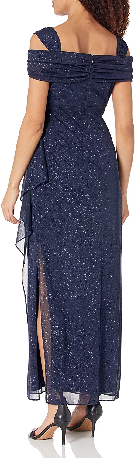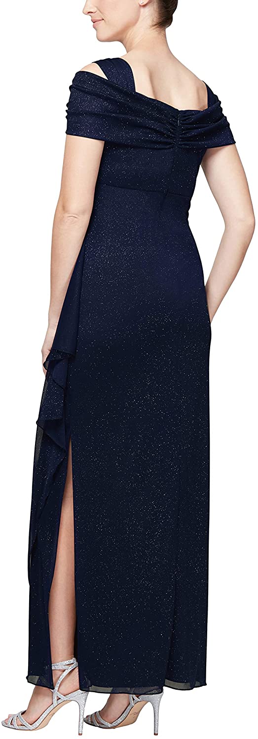 Alex Evenings was founded on one simple idea: that eveningwear should reflect YOU, the amazing woman wearing it.Floor skimming skirt cold shoulder dress with beaded waist detail and cowl neckline.