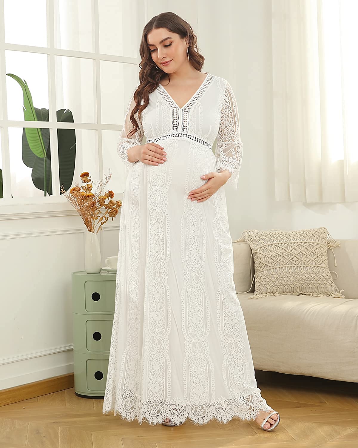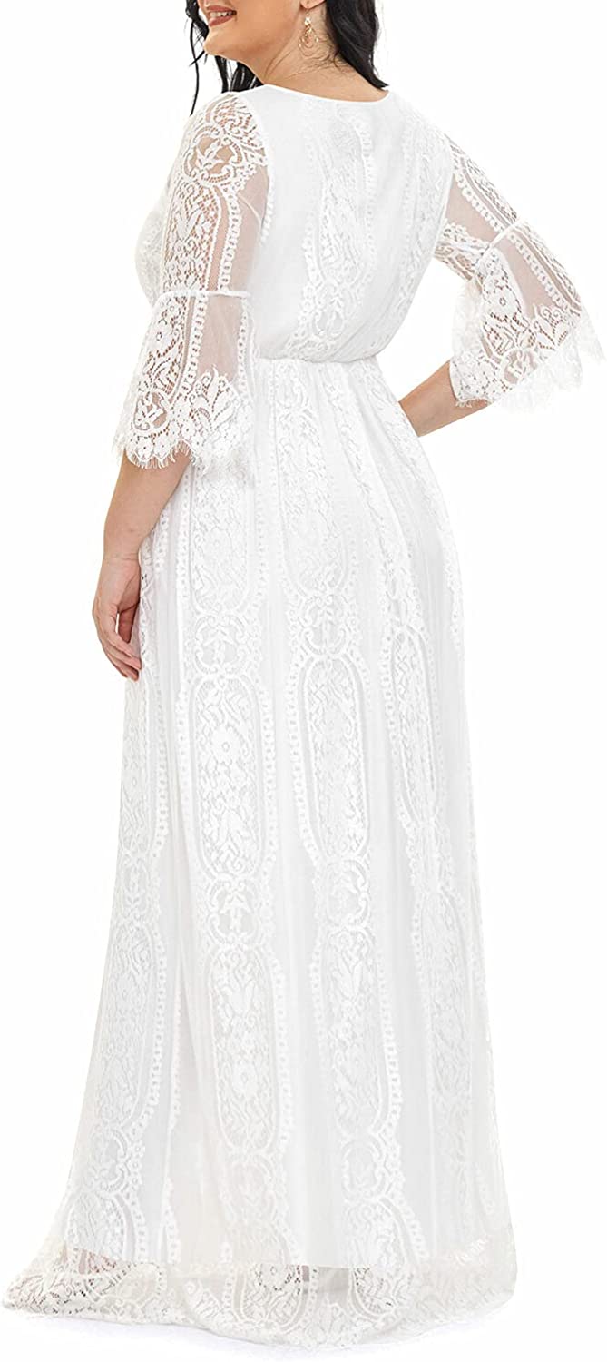 Women's Plus Size Boho Maxi Floral Lace Bohemian Wedding Dress V Neck Flowy Long Party Dresses