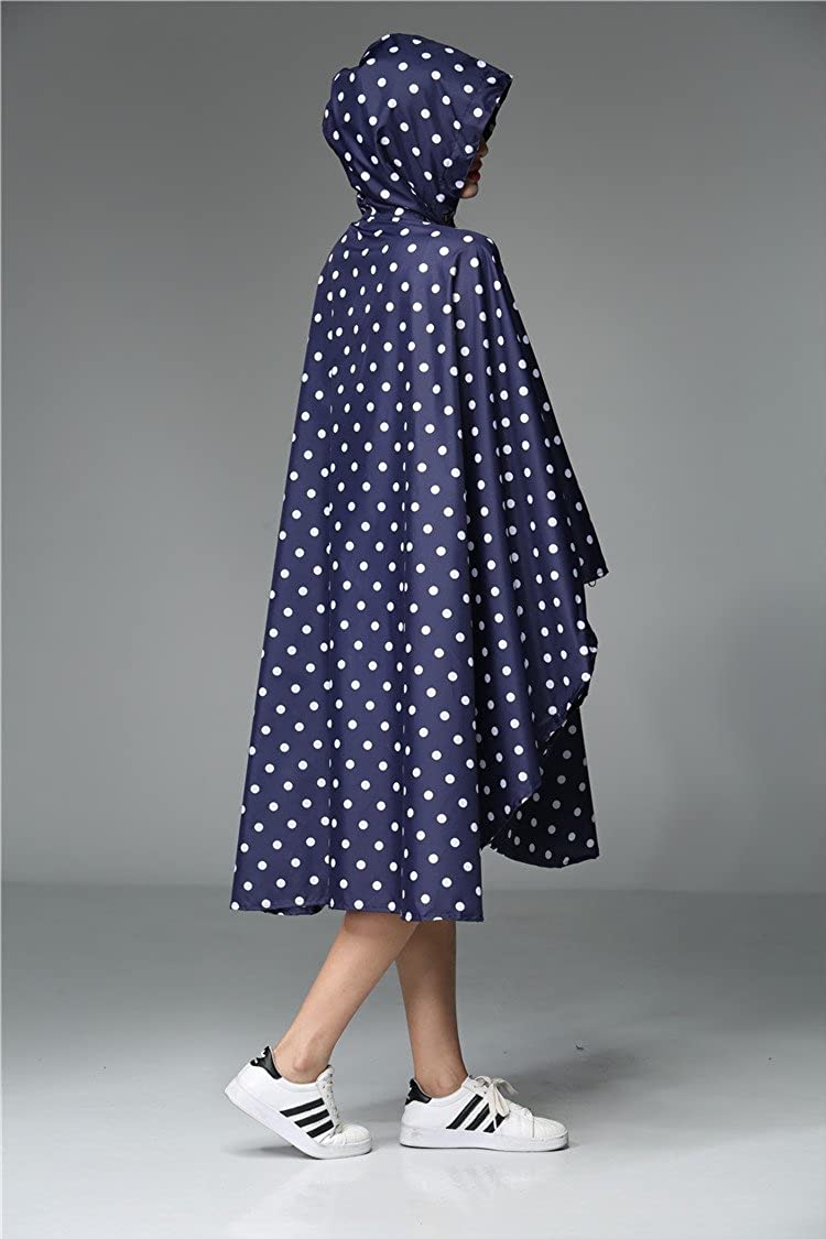 Womens Rain Poncho Stylish Polyester Waterproof Raincoat Free Size with Hood Zipper Various Colors Styles