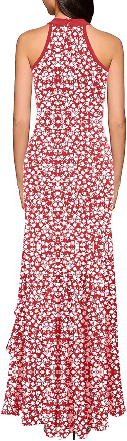 Women's Round Neck Sleeveless Dress Floral Print Empire Waist Slit Dress Mermaid Slim Fit Long Dresses