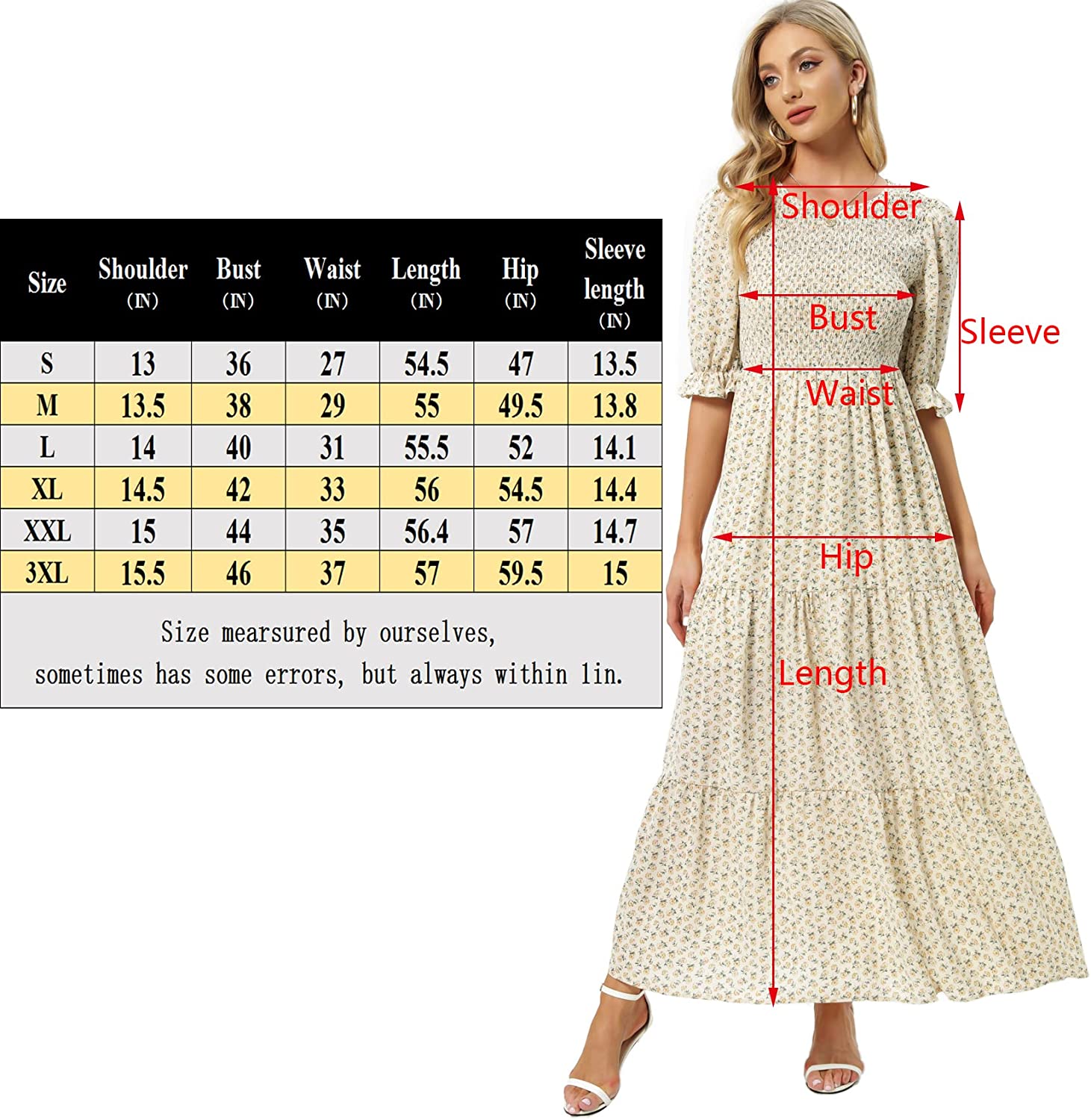 Womens Summer Casual Half Sleeve Bohemian Floral Tiered Maxi Dress