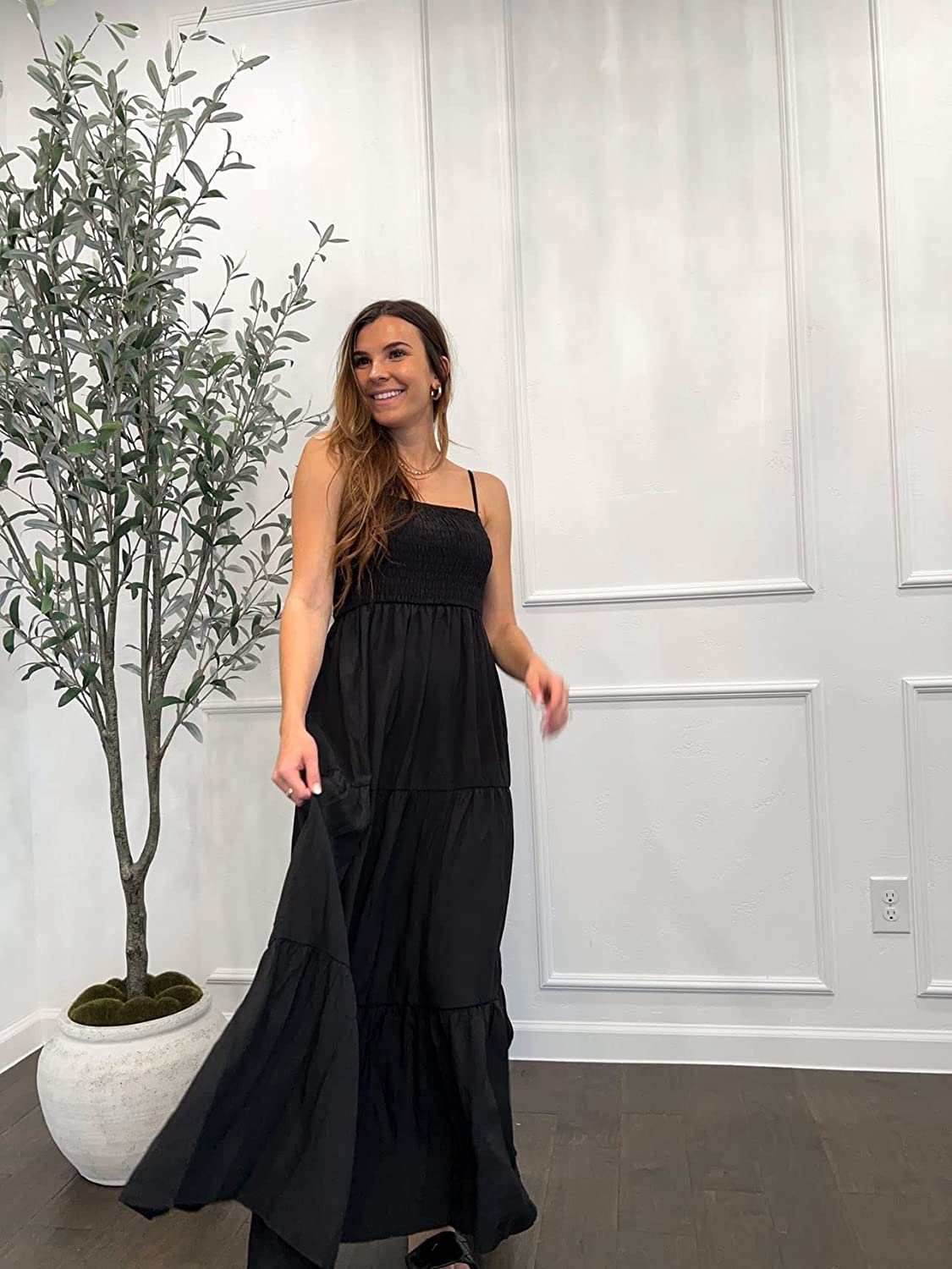 Women's Summer Maxi Dress Casual Boho Sleeveless Spaghetti Strap Smocked Tiered Long Beach Sun Dresses