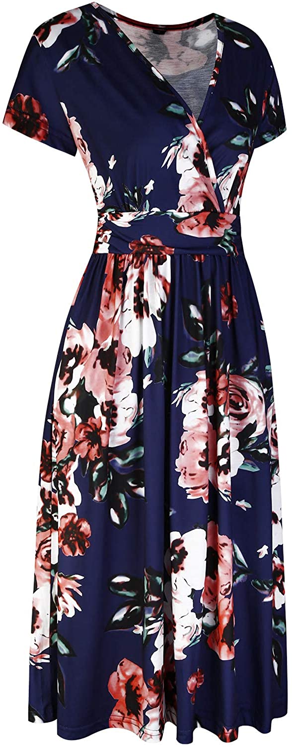 Women's Summer Short Sleeve V-Neck Floral Short Party Dress with Pockets