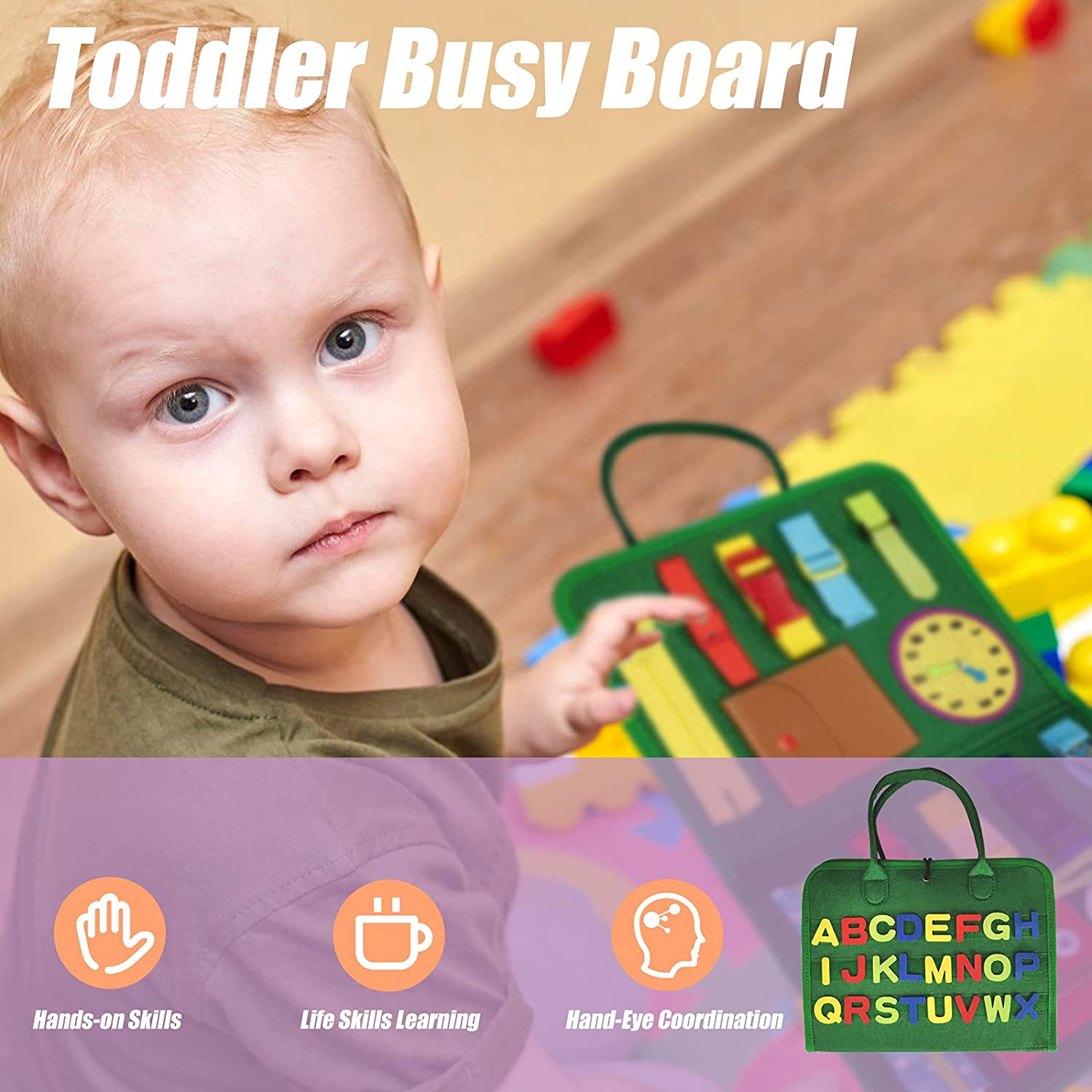 YANENAN Toddler Busy Board, Preschool Montessori Board for Develop Basic Skills, Airplane, Car Travel Sensory Toys for 1 2 3 4 Years Old Kids