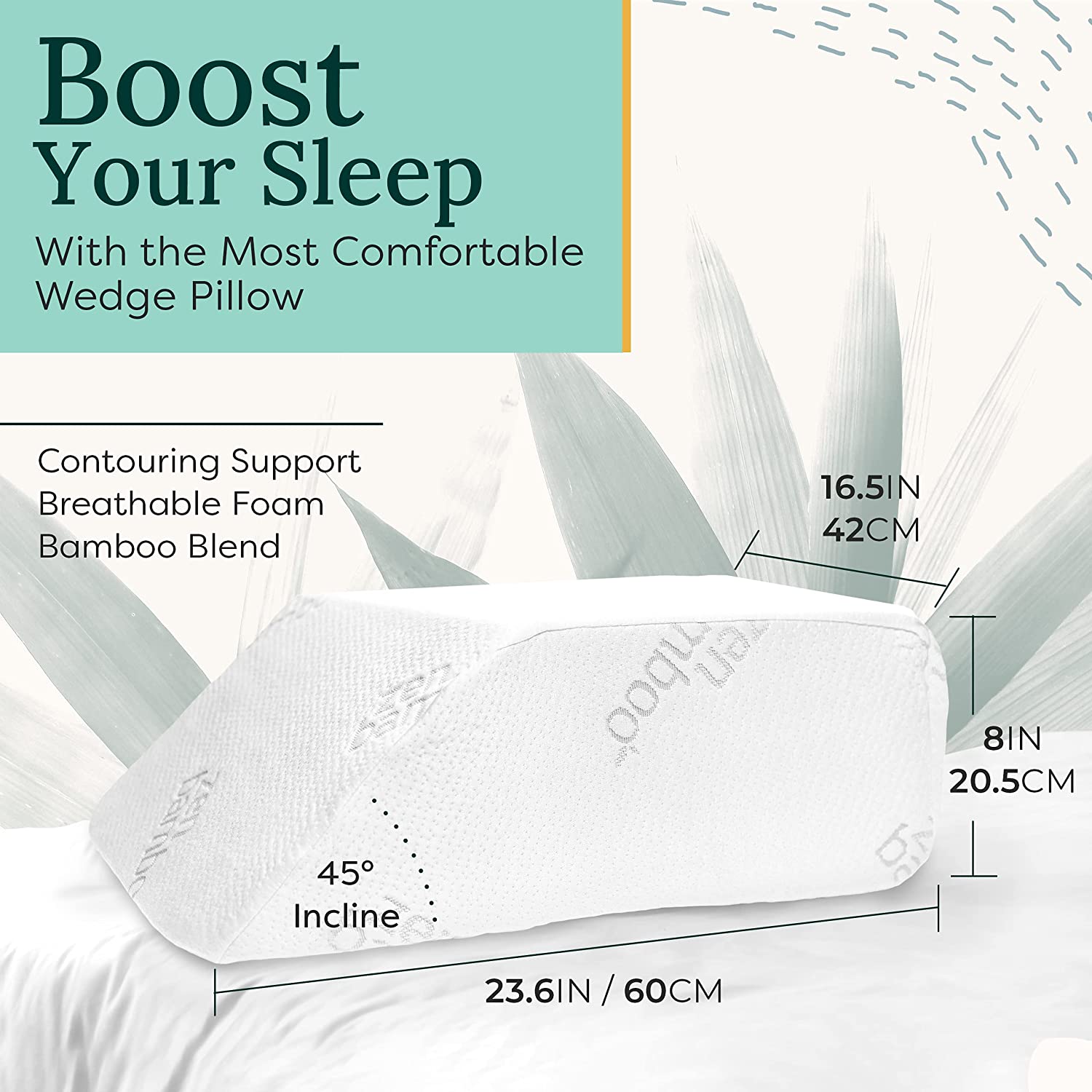 Zen Bamboo Wedge Pillows for Sleeping - Luxury Foam Leg Elevation Pillow for Leg & Back Discomfort w/ Removable Cover