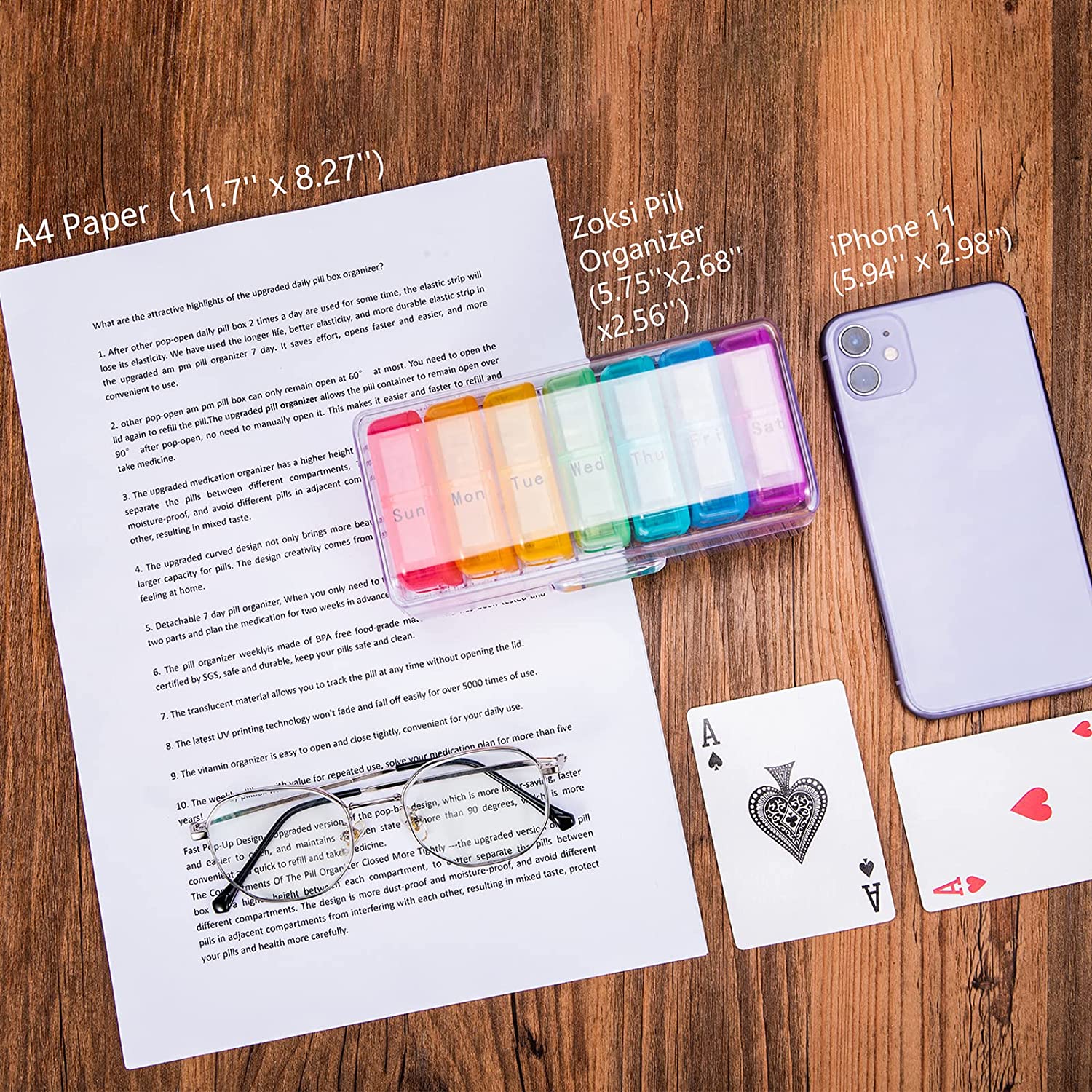 Zoksi Weekly Pill Organizer 2 Times a Day, Rainbow 7 Day Am Pm Pill Box, Daily Am Pm Pill Organizer 7 Day, Portable Vitamin Pill Case, Weekly Pill Box for Fish Oils, Vitamin, Supplement