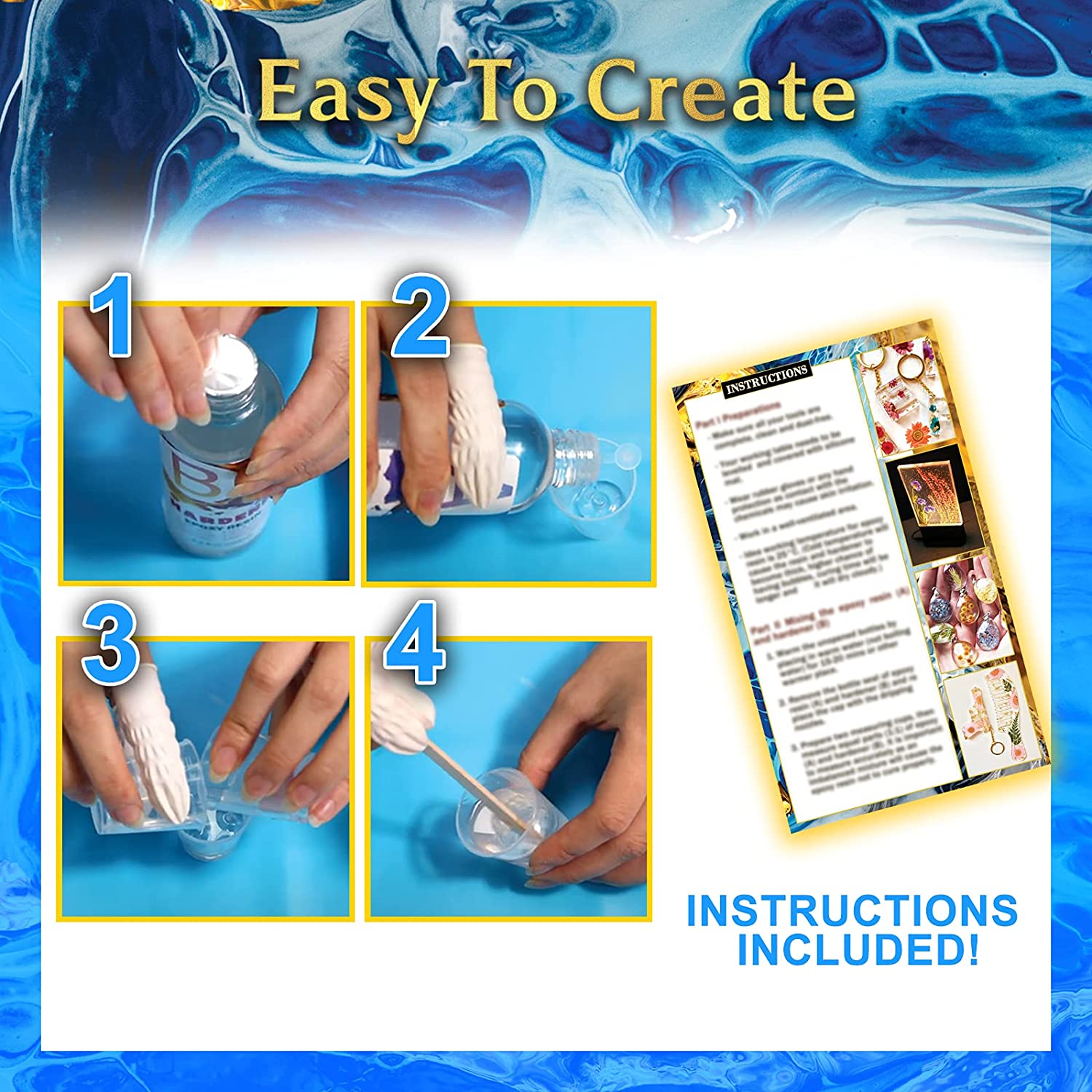 Zoncolor Epoxy Resin Silicone Molds Starter Kit - All in One Office Home Decor Art Clear Craft Jewelry Making Kit with Storage Bag Plastic Spoons Gold Foil Flakes Keychain Necklace Supplies Beginners