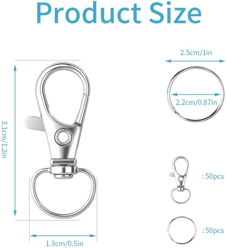 2.Applications: These swivel snap hooks with key rings are great choice for key chain, purse, handbags, dog collars, lanyards, jewelry decoration and other DIY creation.