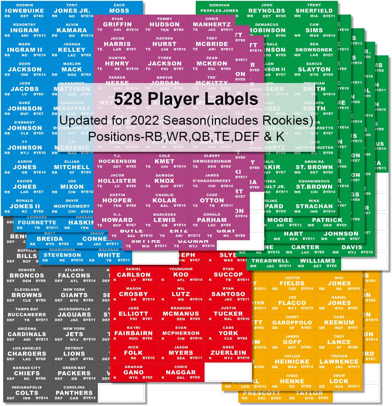 2022 Fantasy Football Draft Board Kit 12 Teams 20 Rounds with 528 Player Sticker Labels