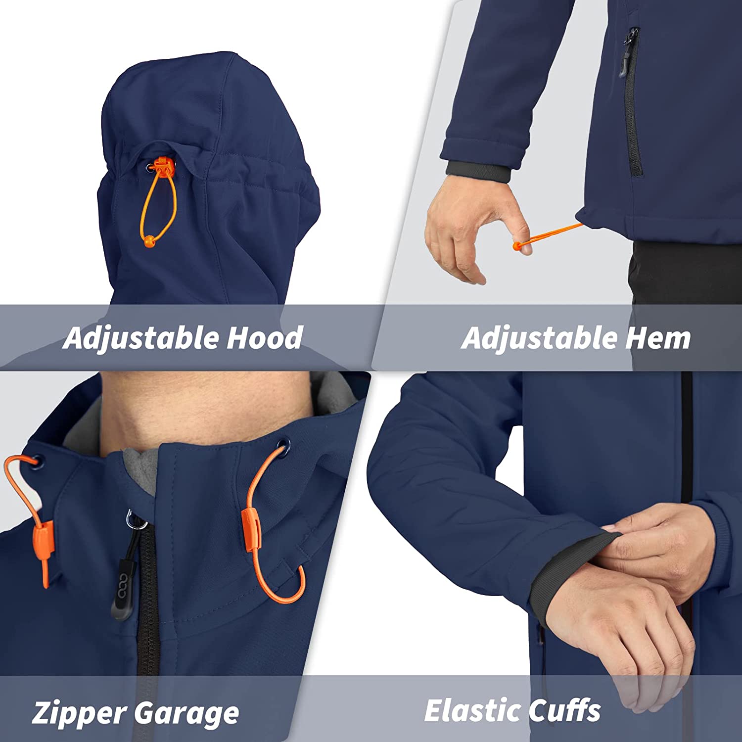 33,000ft Men's Softshell Jacket Fleece Lined, Water Resistant Winter Warm Shell Jacket Coat Lightweight Outdoor Hiking